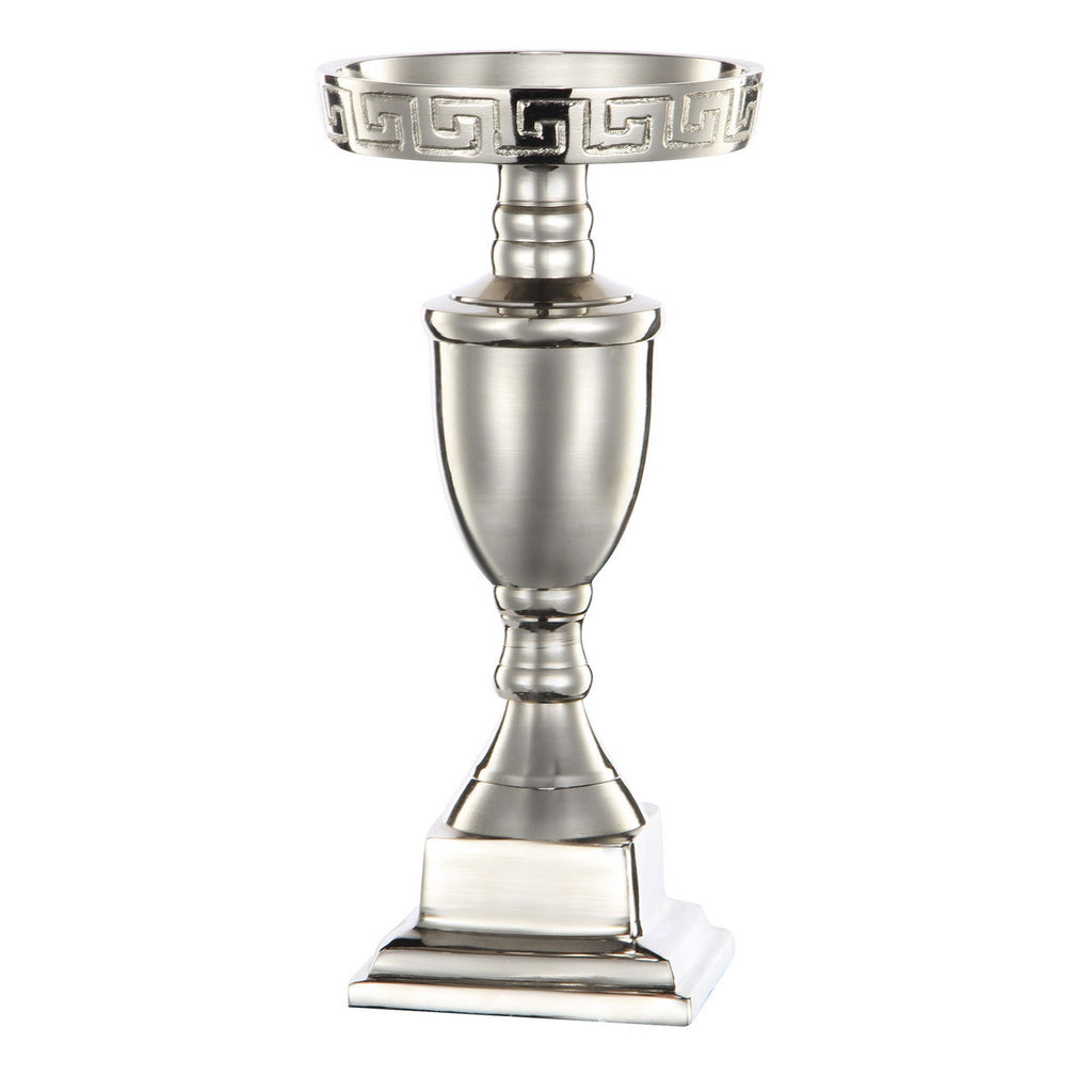 With it's beautiful Greek style trim, our nickel finish candle holder creates a stylish look to any table top decor