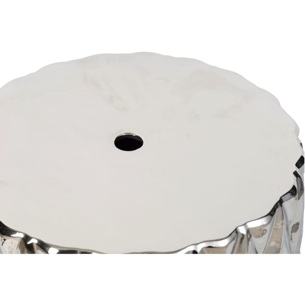Liven up your space with this dynamic stool featuring a timeless chevron pattern transformed with bold texture and shine. Perfect as a chic side table or convenient extra seating, this stool offers versatile function without sacrificing eye-catching style. Add this stool to a modern living room, airy sunroom, or sophisticated office to enjoy its sleek shine and modern elegance.