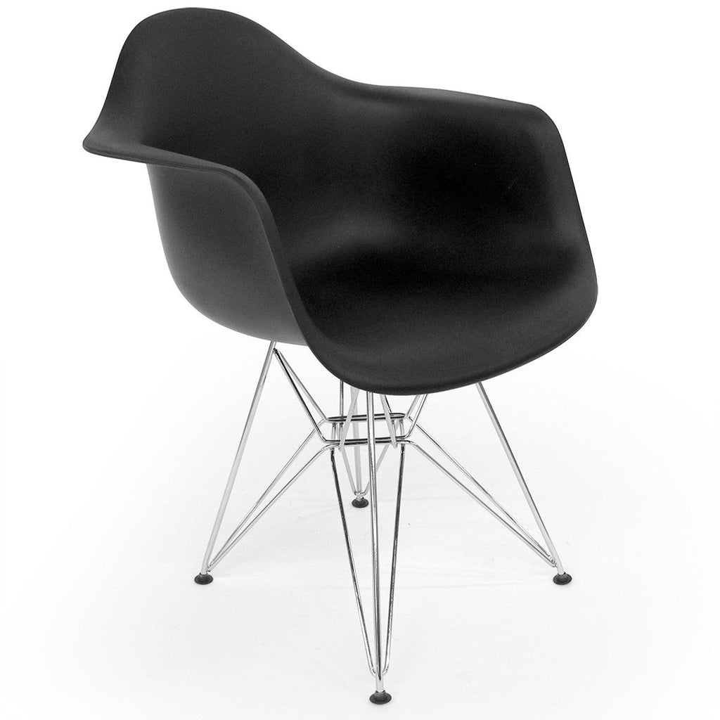 Classically inspired by the iconic mid century modern design, our molded plastic arm chair on a chrome eiffel base perfectly complements any setting.