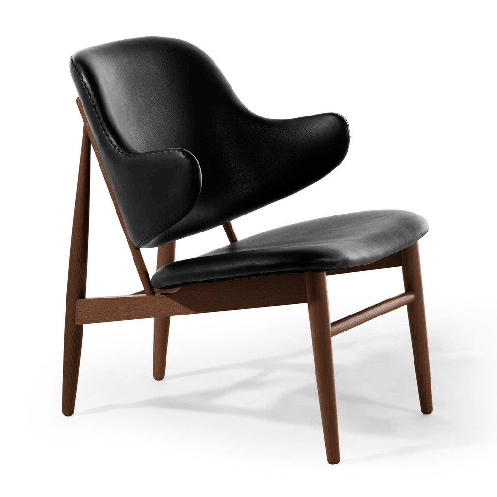 Inspired by the iconic mid century Danish design, our Mina chair envelops you in comfort. Crafted from solid American Ash stained a natural finish with black leather upholstery, this lounge chair is true to the original classic design. The easy slope of its back and seat are further enhanced by the gentle curve of the armrests. The beautifully clean lines of its frame are easily recognized from each angle making it a focal piece in your home.