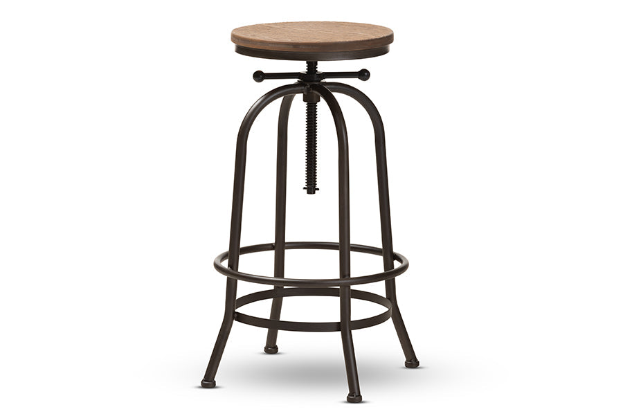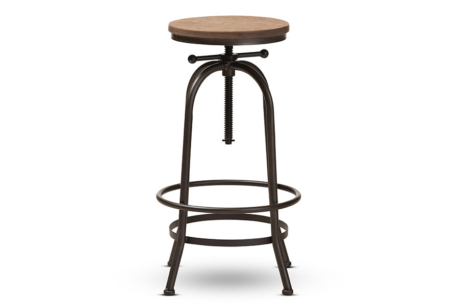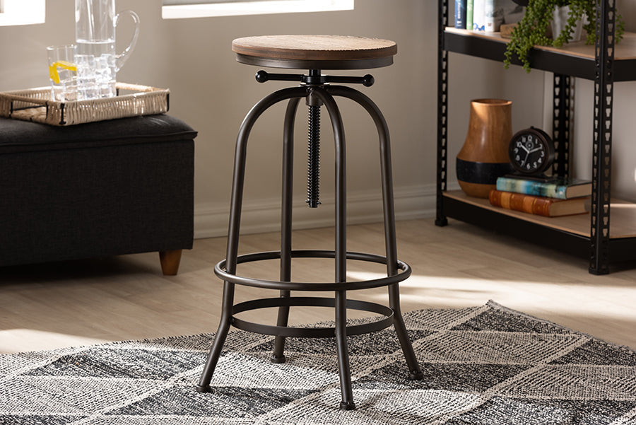 Baxton Studio Aline Vintage Rustic Industrial Style Wood and Rust-Finished Steel Adjustable Swivel Bar Stool