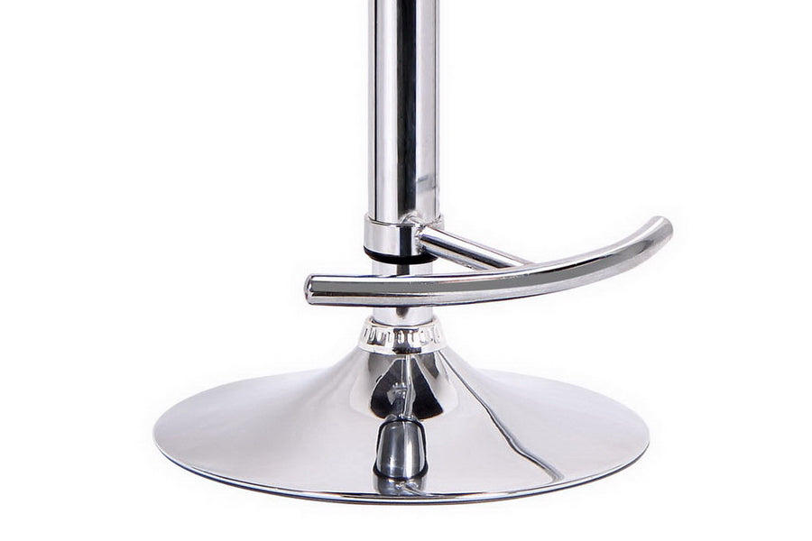 Kitchen counter, restaurant bar, basement lounge... This contemporary bar stool is an instant fix to any lackluster space! The Buell Modern Bar Chair is made from a durable molded plywood seat finished with faux walnut veneer and a black faux leather seat. Polyurethane foam cushioning keeps it comfy. Functional features are not lacking: the stool includes a steel base with chrome finish, adjustable height gas piston, and 360 degree swivel. A protective plastic ring acts as a barrier to keep the base from scratching hard flooring. Made in China; assembly is required. To clean, wipe with a damp cloth.