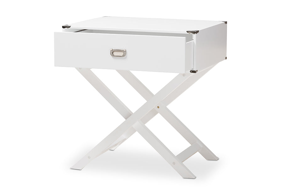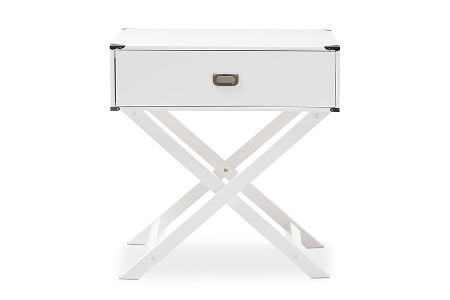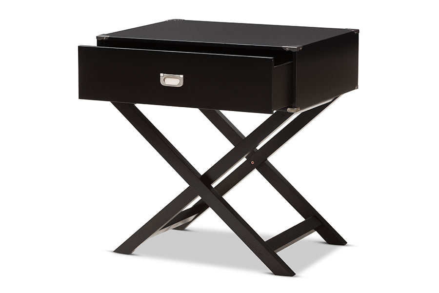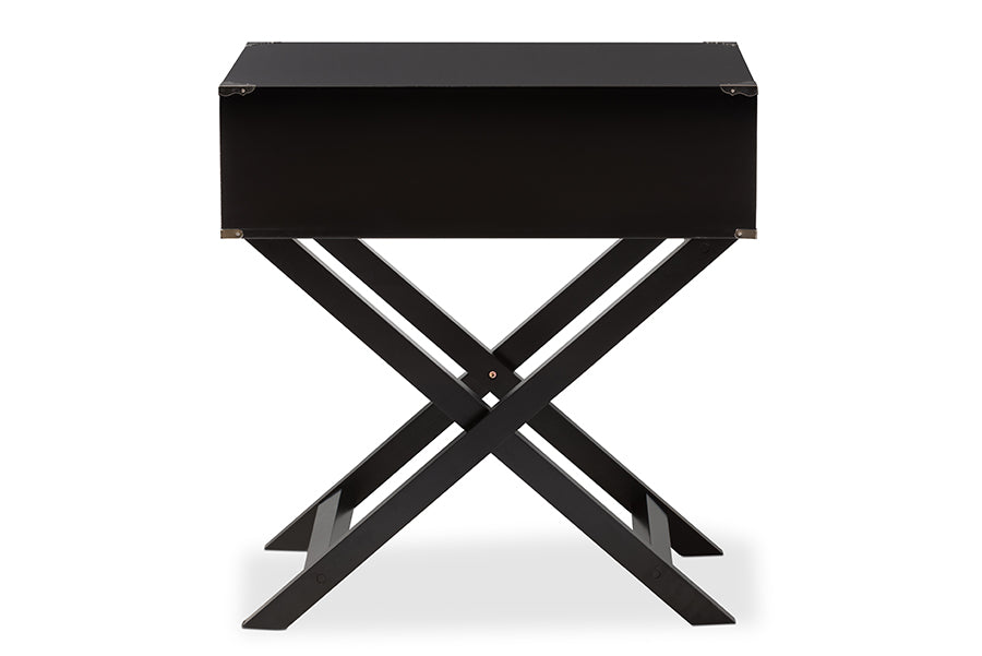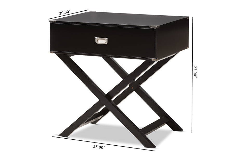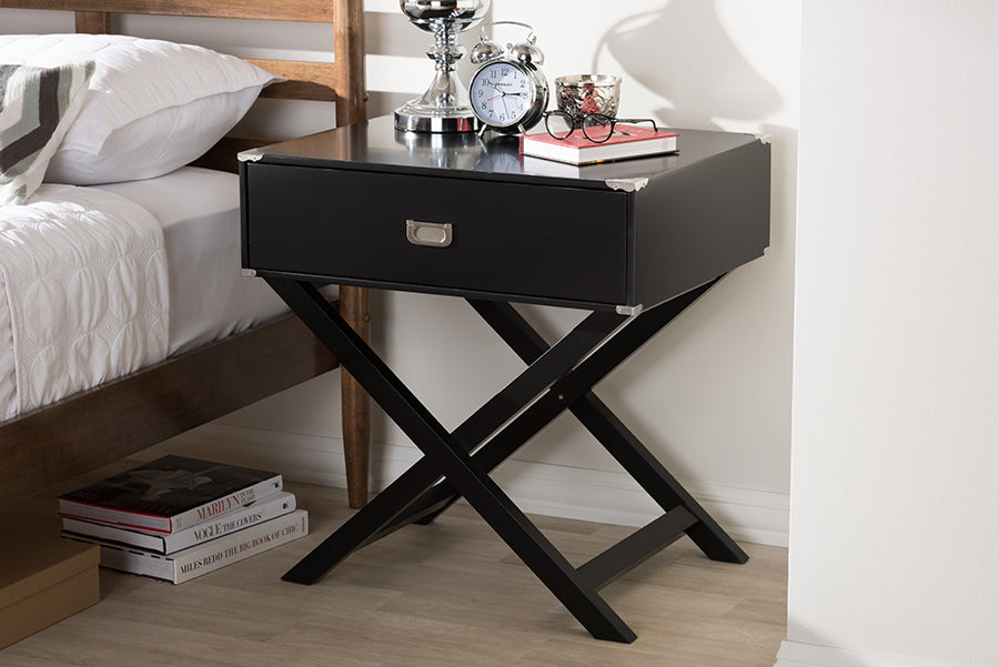 Display your novels in style by your bed and within reach by showcasing the wonderful Curtice bedside table. High-density medium density board base for a sturdy and durable quality with a black paint finish for smooth, resilient style. Design features one drawer with a fixed x- base for a lamp, books and bedroom articles. Metal brackets and handle pulls complete the look of a modern and contemporary style. Made in China, the Curtice nightstand requires assembly.