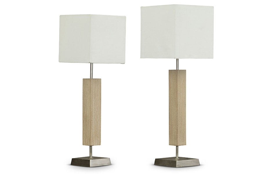 Sporting a complementary pairing of rectangle and cube elements, our Esquina Wood and Fabric Lamp Set will get you excited about illuminating your life. Constructed from genuine mangga wood, this two-lamp set combines natural wood grain, cream-colored shades and metallic bases for easy integration into a multitude of settings. Zen-like in its singularity of purpose and simplicity of execution, the Esquina Wood and Fabric Lamp Set expresses the discount-furniture mantra.