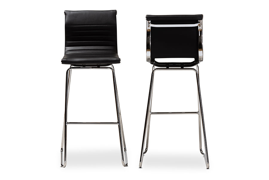 Baxton Studio Giorgio Modern and Contemporary Black Faux Leather Upholstered Chrome-Finished Steel Bar Stool Set