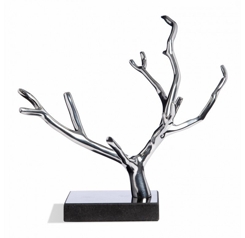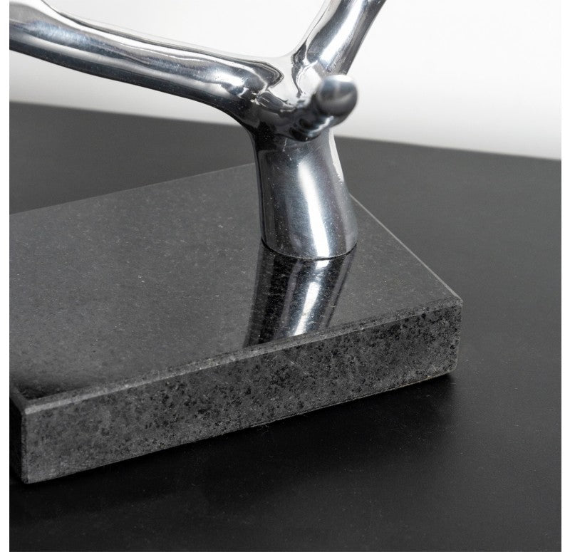 Polished aluminum with a granite stone base. Weight: 2 lbs.