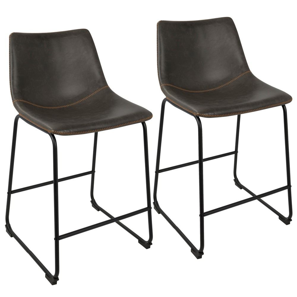 Sit in style with the Industrial-Rustic design of the Duke counter stool. A faux leather upholstered seat with unique stitching sits on a sturdy, fixed height metal frame. Sold in sets of two, the Duke counter stool looks great in any kitchen, bar or break room.