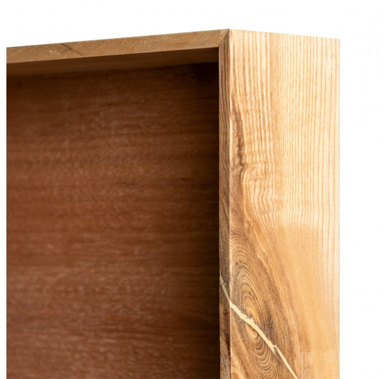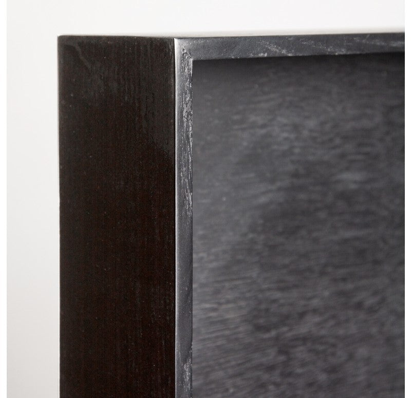 Satin black/Natural painted hardwood with wood grain texture. Open front, no glass. Security hardware included. Exterior dimensions.