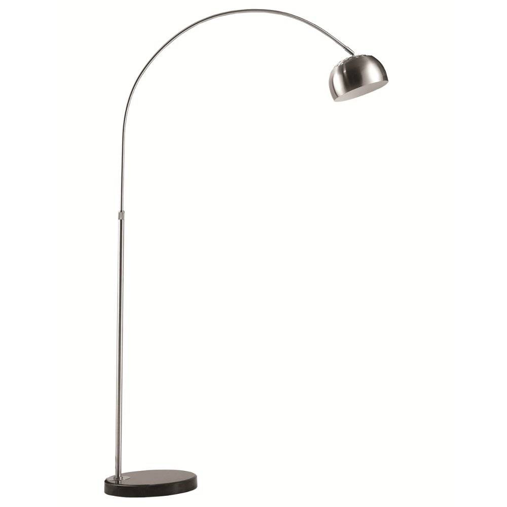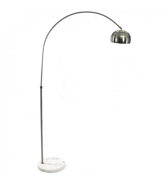 Ultra modern styled light that features a polished chrome shade with a round tube polished stainless steel arc, with a black or white base. Adjustable height.