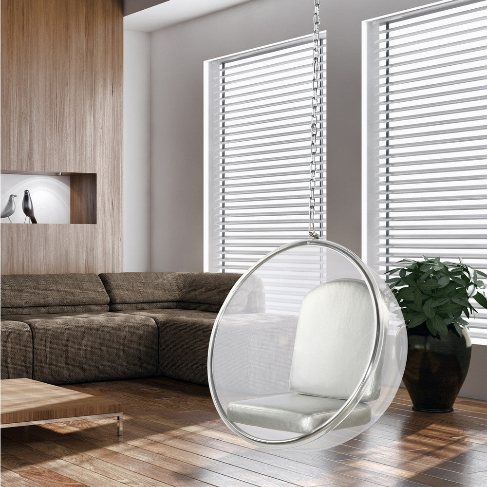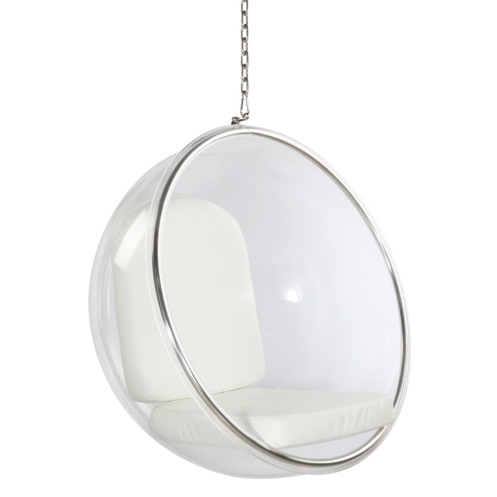 The acrylic and chrome chair remains as cutting edge in its design, despite being created over 40 year's ago. Chair bubble is made of acrylic and the framing edge and chain are polished chrome.