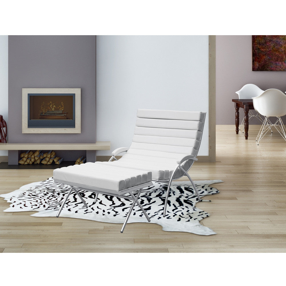 The Classic Chair & Ottoman we are selling was made with the highest quality possible using stainless tubing which is hand made using classic welding and bending techniques. The leather is fine Italian soft leather all over. Each square leather is hand selected, piped, tufted and individually sewn by expert leather craftsmen. The cushions rest upon a suspended network of saddle fine leather belt straps.