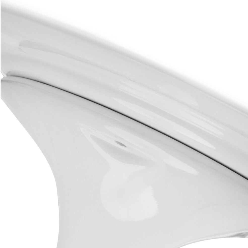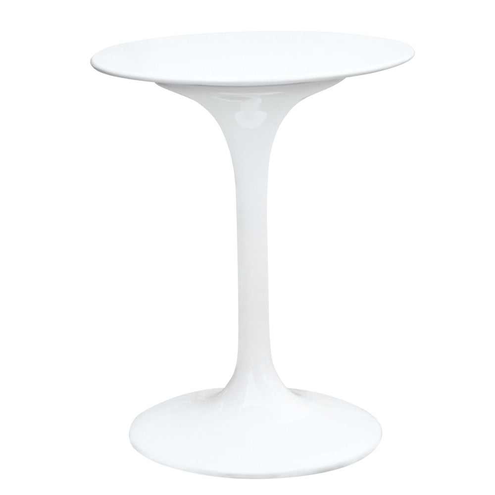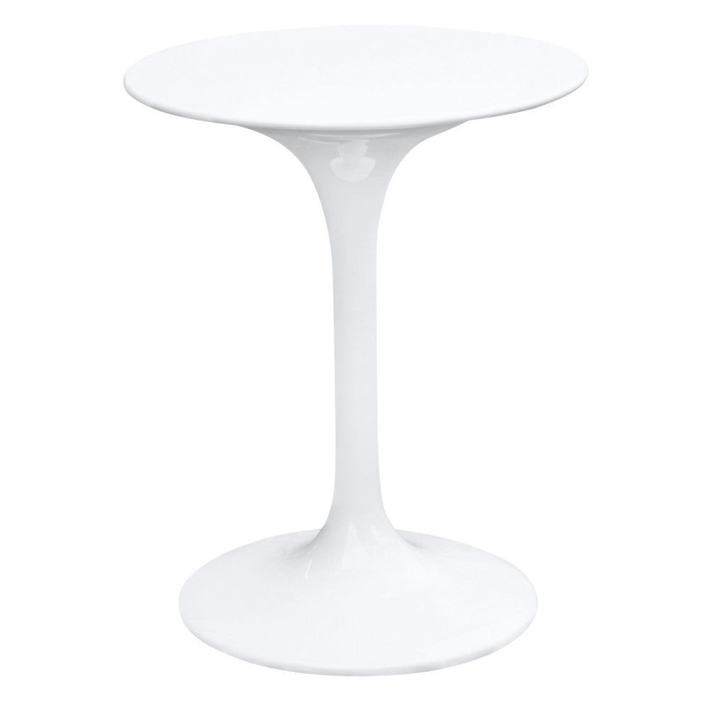 The Flower table is a white a molded fiberglass top, Its base is a heavy molded cast aluminum, while the shell is in reinforced molded fiberglass base