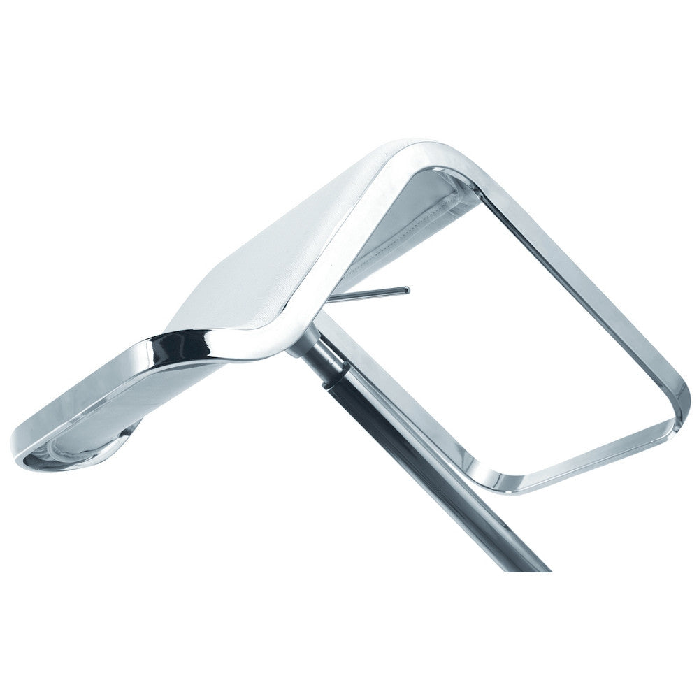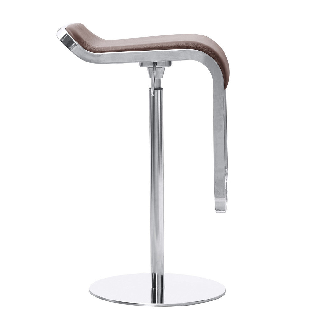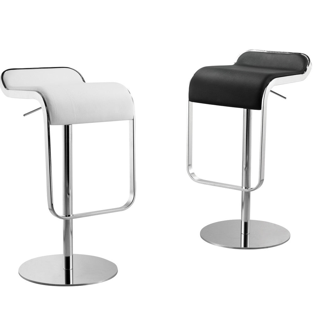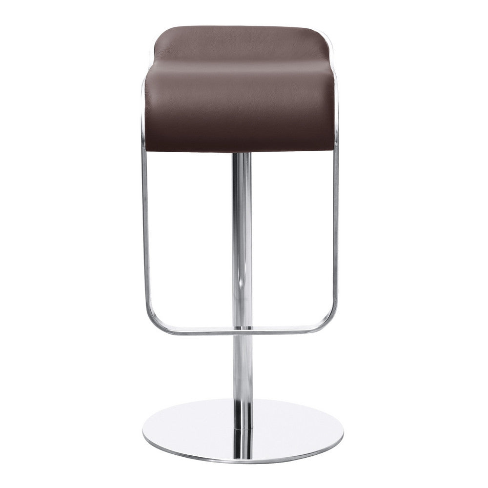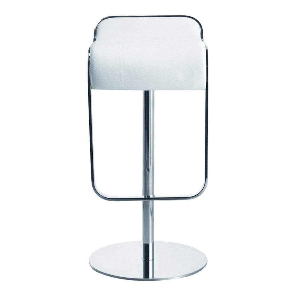 The Lem Bar Stool Chair is a swivel chair the bottom base is polished steel and the frame is chrome. Chair is height adjustable.