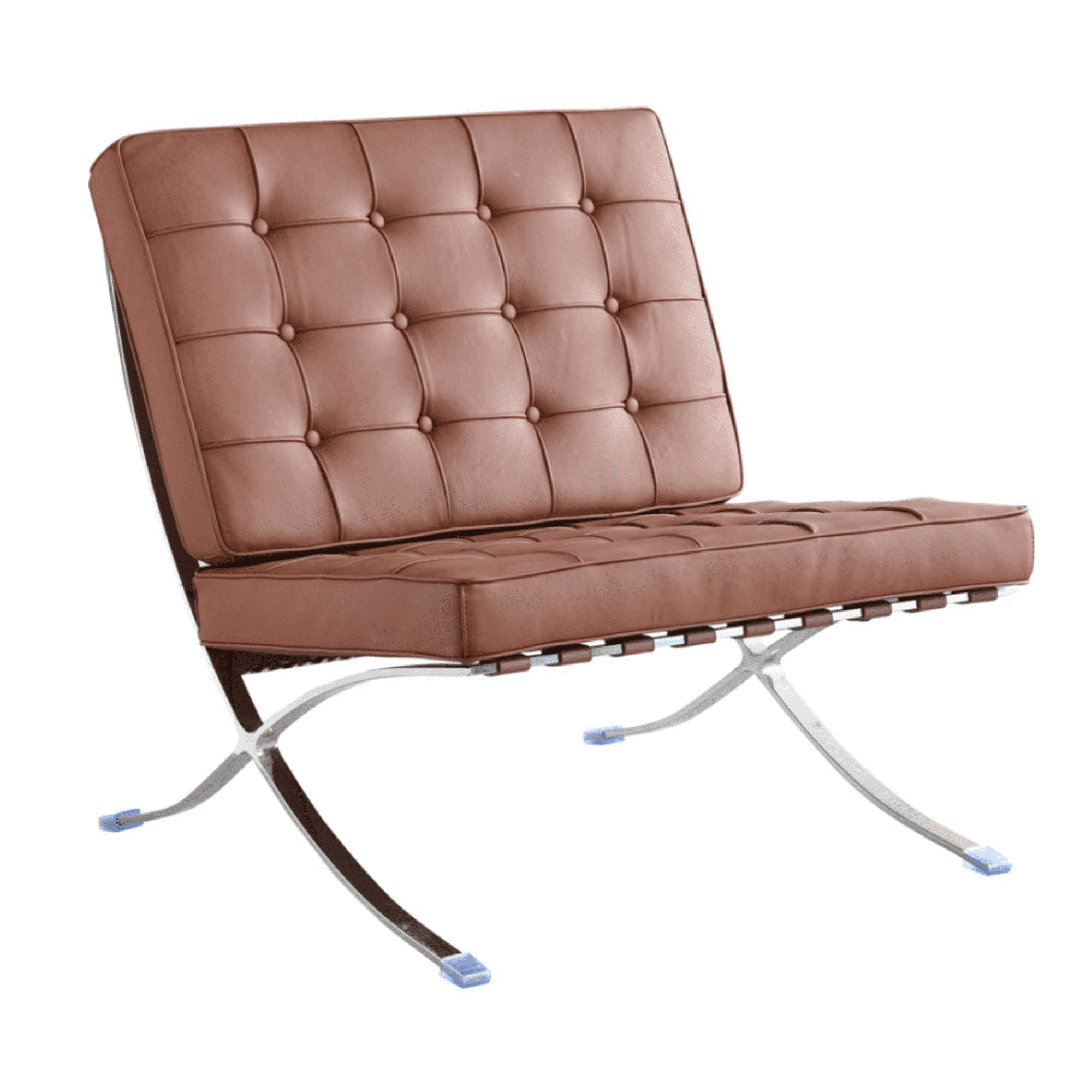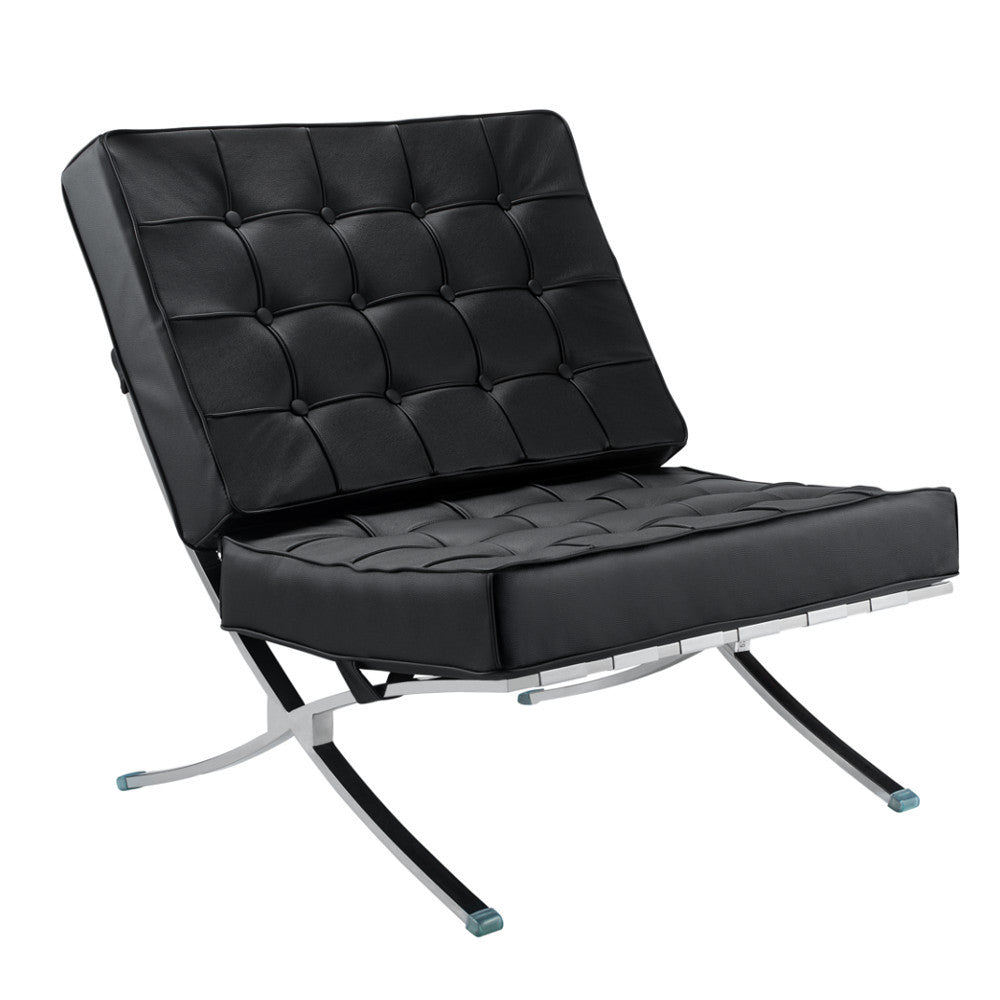 The Pavilion Chair is inspired by the designs originally created for the International Exhibition in Barcelona Spain. The Chair we are selling was made with the highest quality possible using premium solid core 304 stainless steel flat bar which is hand made using classic welding and bending techniques. The leather is fine 100% Italian soft leather all over. Each square leather is hand selected, piped, tufted and individually sewn by expert leather craftsmen. The cushions rest upon a suspended network of saddle fine leather belt straps. The Pavilian Chair that we are selling is a high quality reproduction of the original