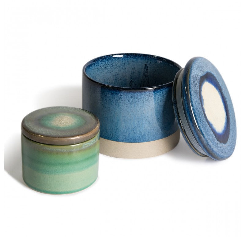 Removable lid. Can be used as a planter. Each piece is hand made, painted and glazed. No two are alike. Expect differences between each piece. Holds water. Protect table surfaces. Weight 1 lb.