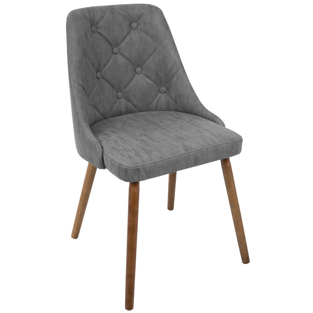 Invite the stylish design of the Giovanni chair into your home. This elegant design features a fully upholstered frame, plush diamond tufted backrest and walnut colored solid wood legs. Available in a variety of colors, the Giovanni can be used as a dining or accent chair.