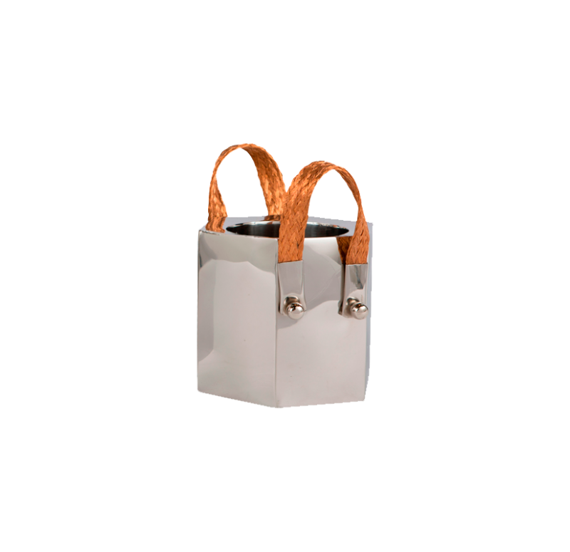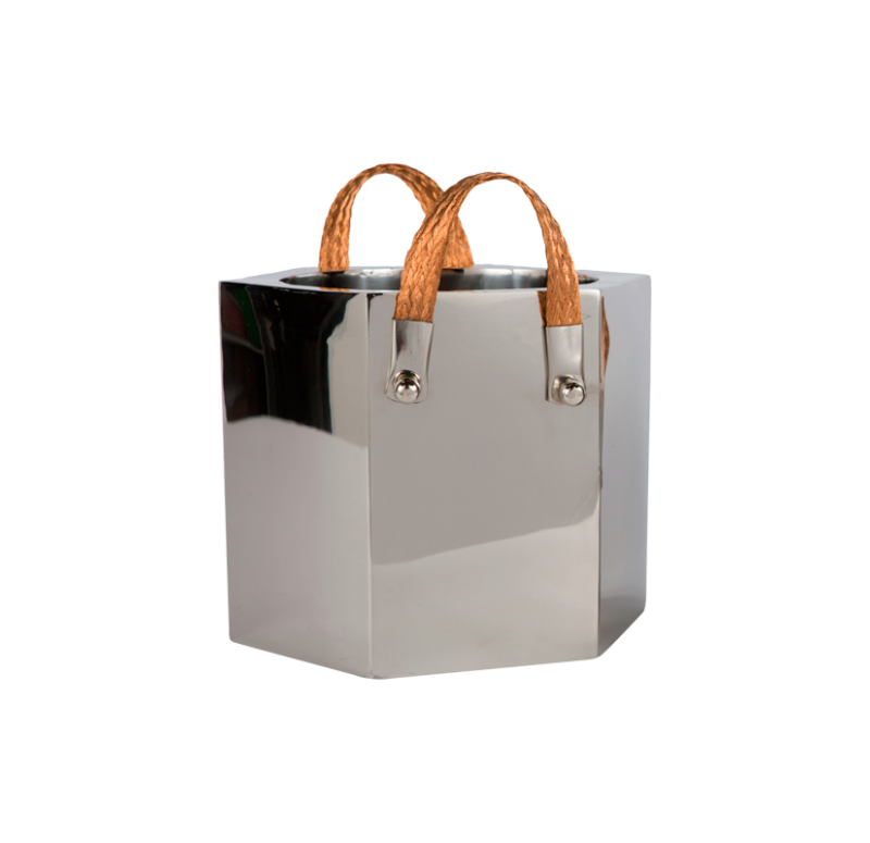 The perfect addition to any bar, this upscale wine cooler is crafted of stainless steel with braided copper handles.