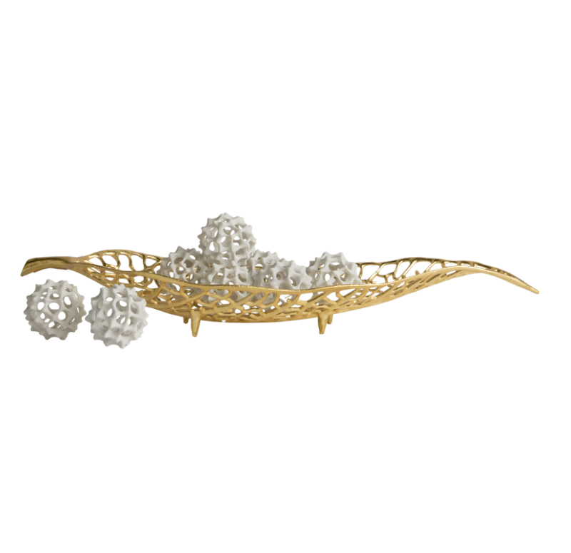 The Gold Leaf Design Group Skeleton Leaf Bowl is an elegant and classy decorative for your center table. You can also choose to keep some other small decorative in the Skeleton Leaf Bowl to accentuate its look even more. The Gold Leaf Design Group Skeleton Leaf Bowl is artistically crafted and finished in the royal color of Gold. The Skeleton Leaf Bowl can also be adorned on your dining table and don‚¬„¢t be surprised if the Skeleton Leaf Bowl becomes the thing of discussion while having your dinner.