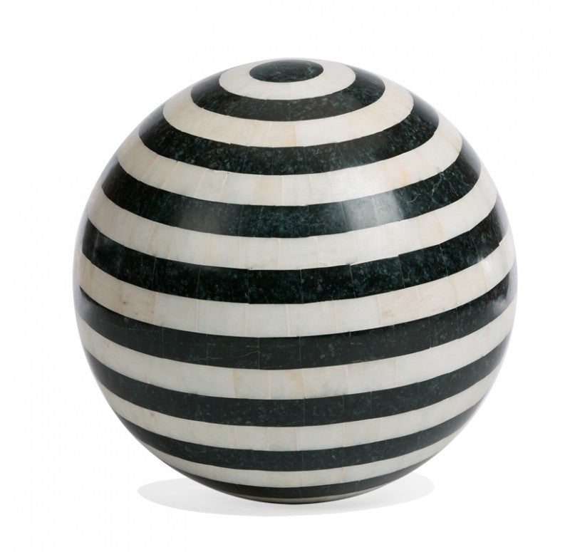 The Gold Leaf Design Group Stripe Inlay Stone Sphere will bring a style statement to your home. Bring this Stripe Inlay Stone Sphere your home and see how it soon becomes the talk of the town. The Gold Leaf Design Group Stripe Inlay Stone Sphere is finished in the most classy and loved combination of the colors of black and white. This Stripe Inlay Stone Sphere from Gold Leaf Design Group will accentuate the look of your room wherever you plan to keep it. The Gold Leaf Design Group Stripe Inlay Stone Sphere will surely take your heart away!