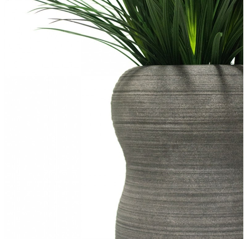 Our popular Liriope Grass combined with the look of stone but without the weight. We can customize most grass designs in any of our custom planters, in most sizes and colors (see ˜Our Products Grasses). Contact us for a quotation of your custom design. Indoors only. Truck shipping. 2-3 week production time upon receipt of 60% down payment.