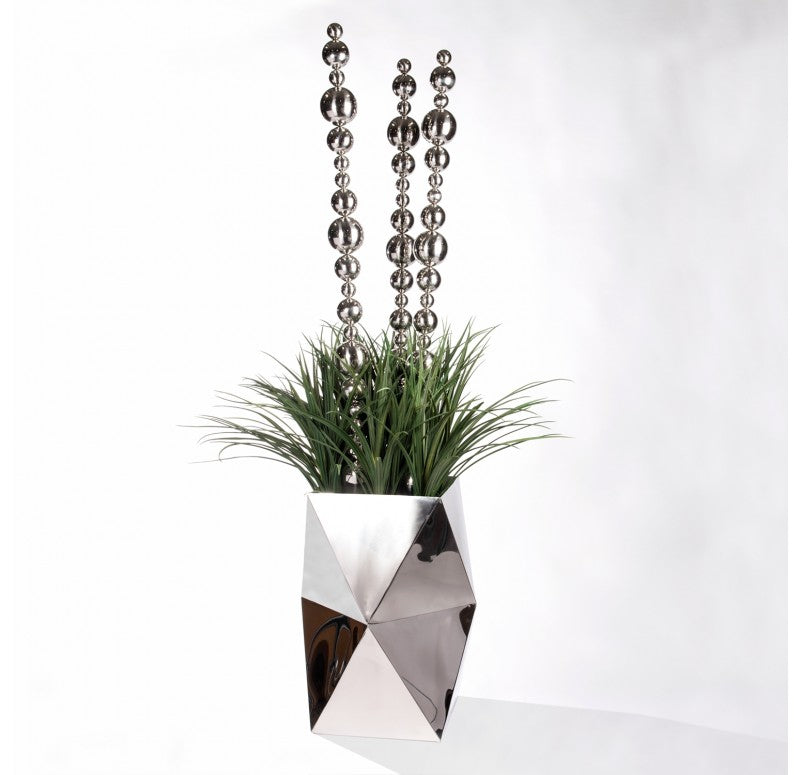 We combine some of our most popular stainless steel sculptures to create durable sculptural plantings. 4- 6 week production time upon receipt of 60% down payment. Truck shipping. Indoor only. SM weighs 35 lbs and LG weighs 50 lbs.