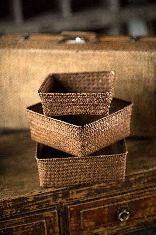 Hand Woven Antique Brown Trays - Set of Three.tray