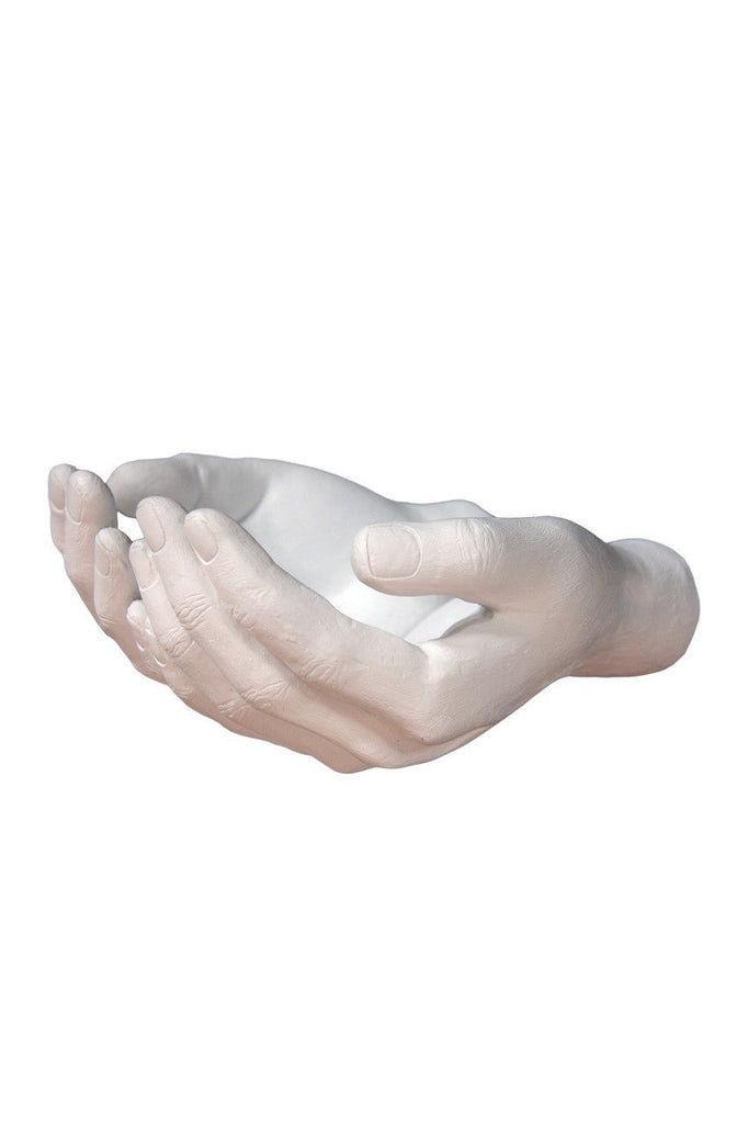 Featuring extended open palms, the Hands Out Wall Hook works well as a stand-alone decorative piece or as a convenient holder for small items. This handmade piece is finished in White resin and makes an ideal addition to eclectic decor. Attach it to an entryway wall to hold keys or palm-size technology.