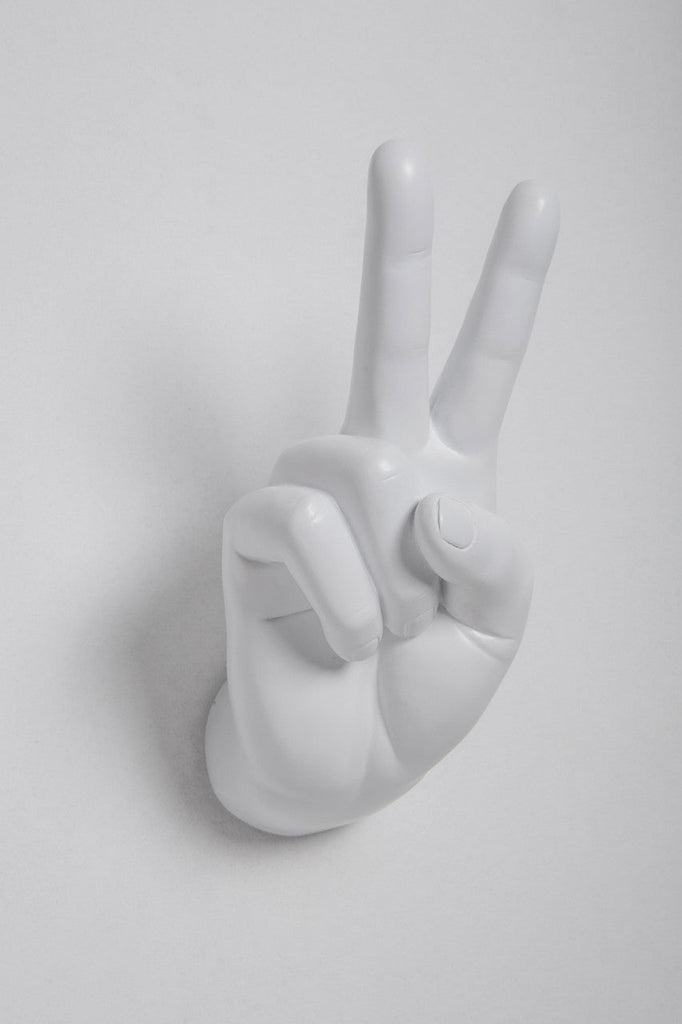 This polished hand figurine showcasing a peace sign works well as a stand-alone decorative piece or as a stylish hanger for small items. The handmade Peace Sign Wall Hook is finished in white resin and makes a unique addition to modern decor. Attach it to an entryway wall for hanging keys or bedroom wall for hanging jewelry.