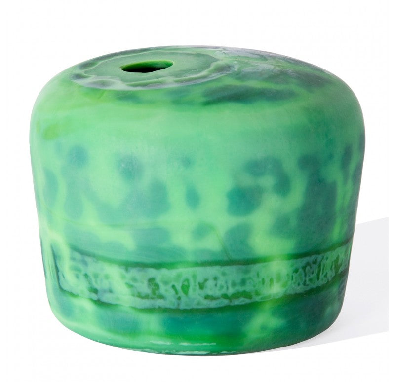 A variety of special techniques are used to craft these hand blown art glass vases. Each one displays multiple layers of thick glass. Each piece is different and cannot be matched with another.
