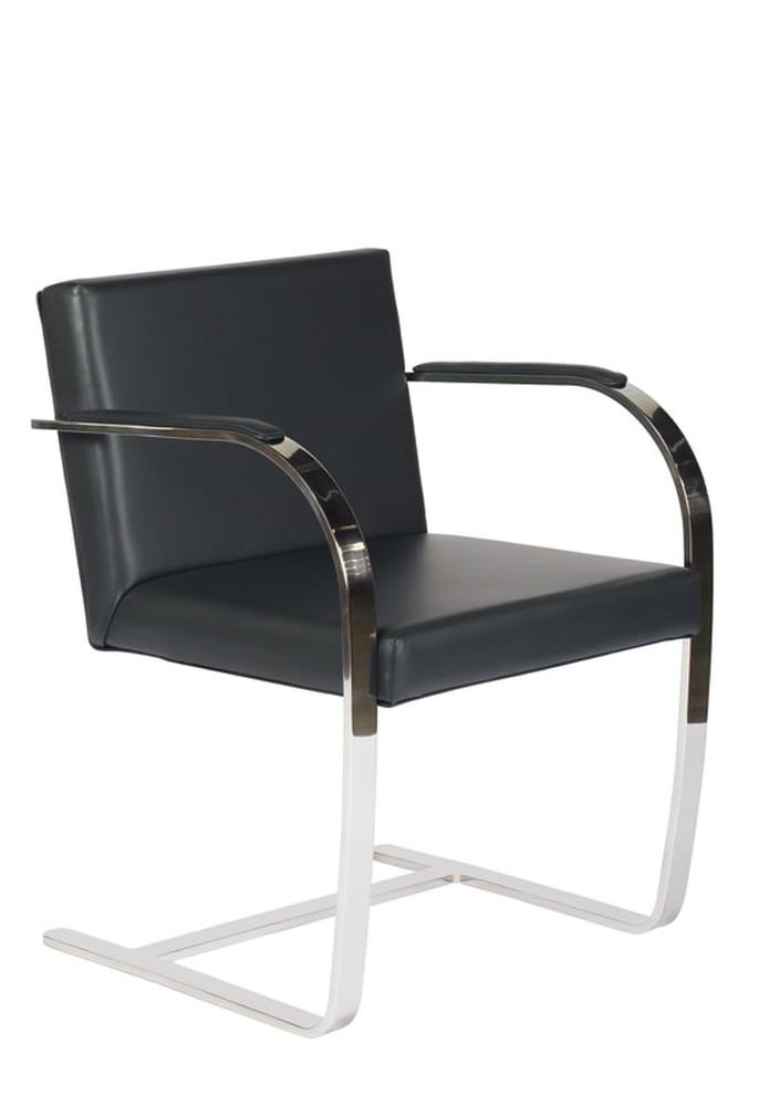 The pabellon black arm chair features a contoured seat and back upholstered in durable black vinyl supported by a sturdy, cantilevered chromed steel tubular frame. Floor glides protect hard surface flooring from scratches while padded armrests add comfort. Perfect as an executive office visitor chair, in conference or break room or as a dining chair at home.