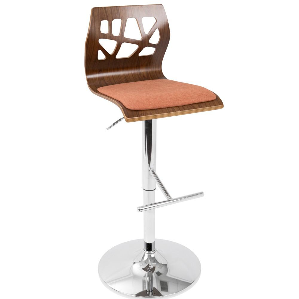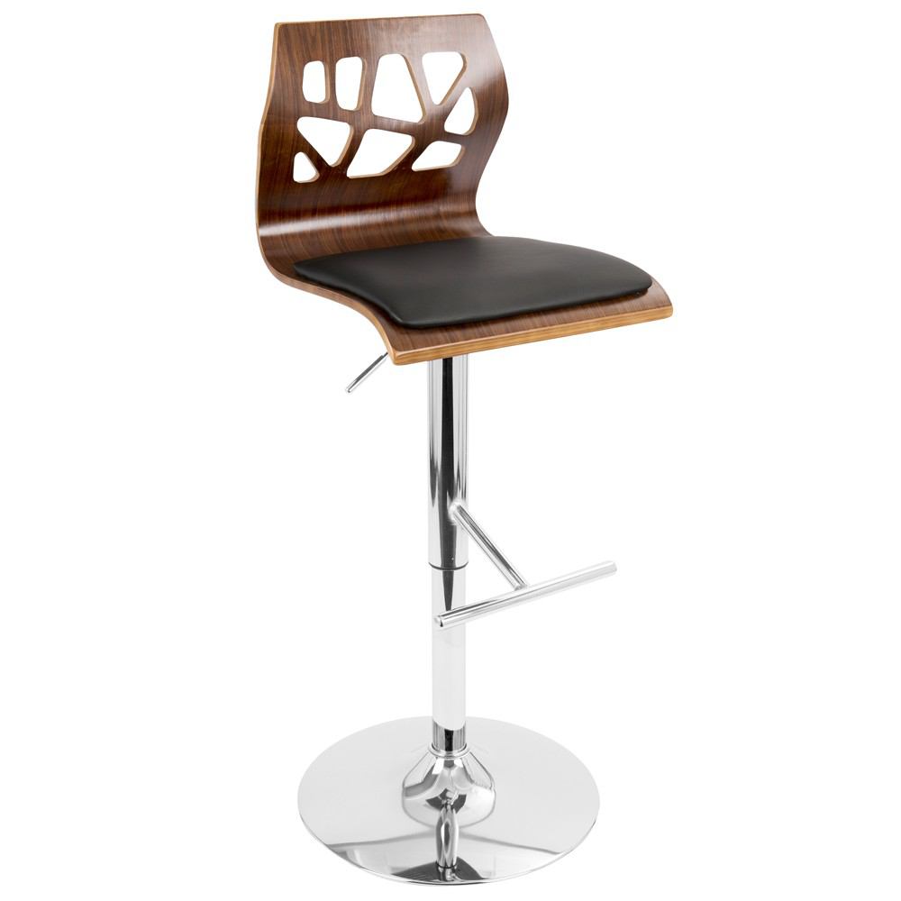 The curved wood frame and cutout backrest of the Folia Bar Stool will add a touch of style to your kitchen or bar. A hydraulic pole adjusts height and the seat is padded and swivels 360 degrees for an added comfort.