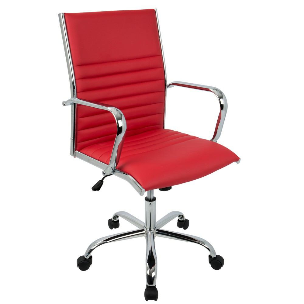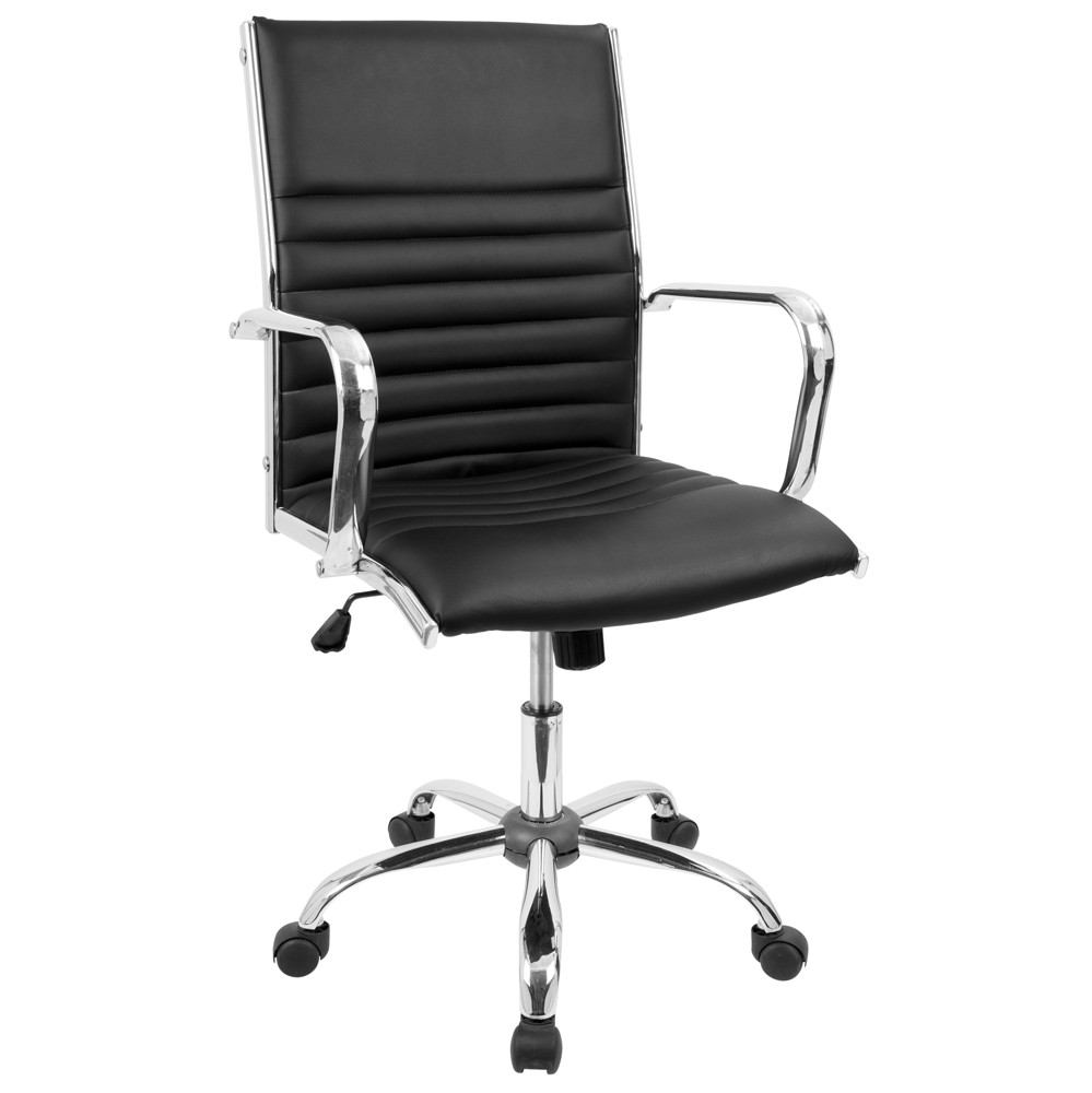 A classic look redesigned for modern appeal. The slightly angular back adds support and style to this leatherette covered office chair. The polished chrome arms and feet makes this whole package complete