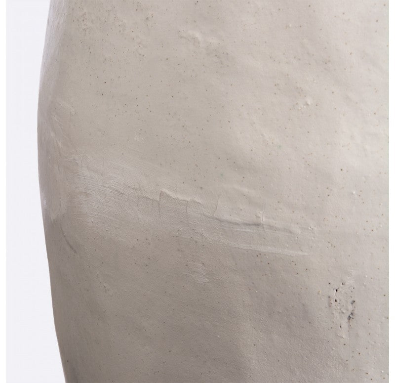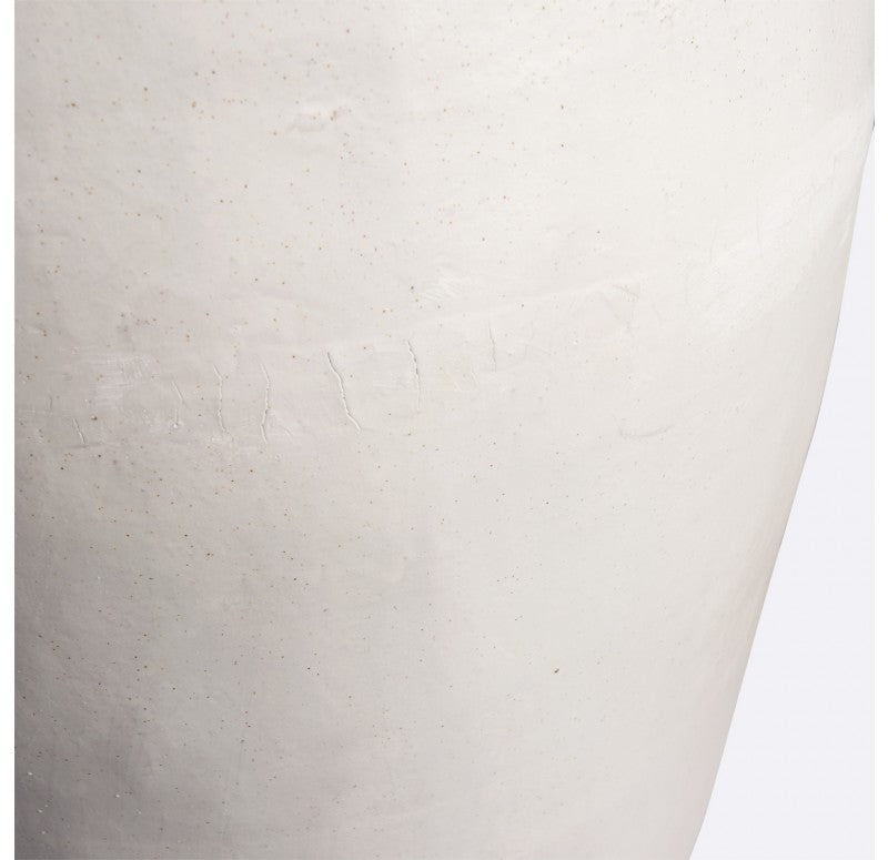 Each piece is hand made and glazed with a matte spotted cream glaze. No two are alike. Expect differences between each piece. Not suitable for exterior freezing. Protect floor surfaces. Truck shipping. Weight: 110 lbs.