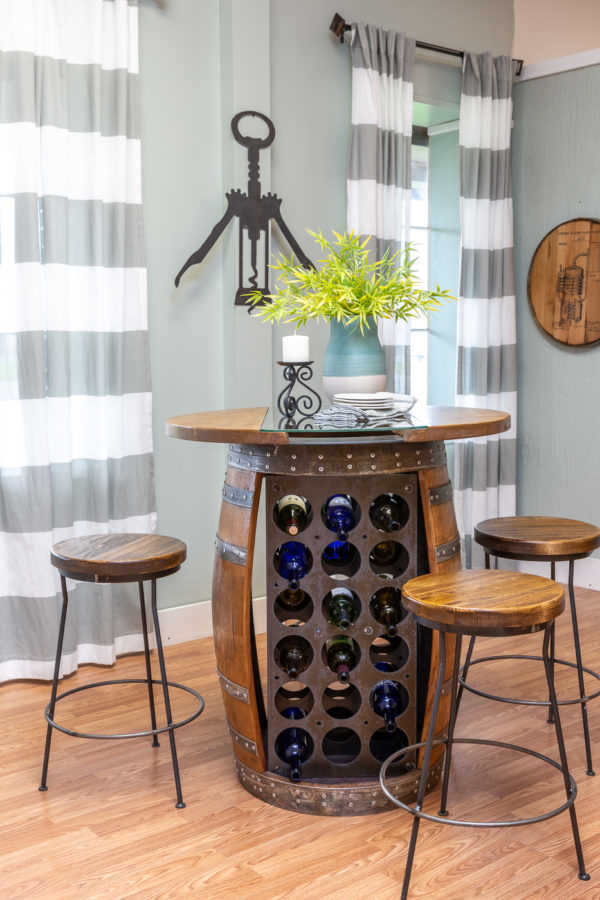 Stool seat measures 14" in diameter - made from hardwood and metal frame. The stool frame is handworked from steel.