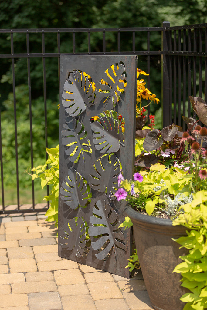 Leaves lift from the surface of this lovely art screen creating a three dimensional work of art. Metal art screen is created using heavy 12 gauge steel. The steel will develop a rust patina over time.