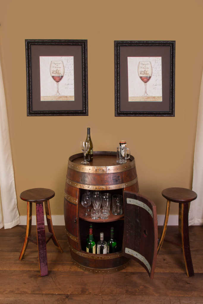 Whole Wine Barrel Cabinet with Internal Lazy Susan Shelf Wonderful refinished vintage wine barrel with cabinet and internal Lazy Susan shelf.