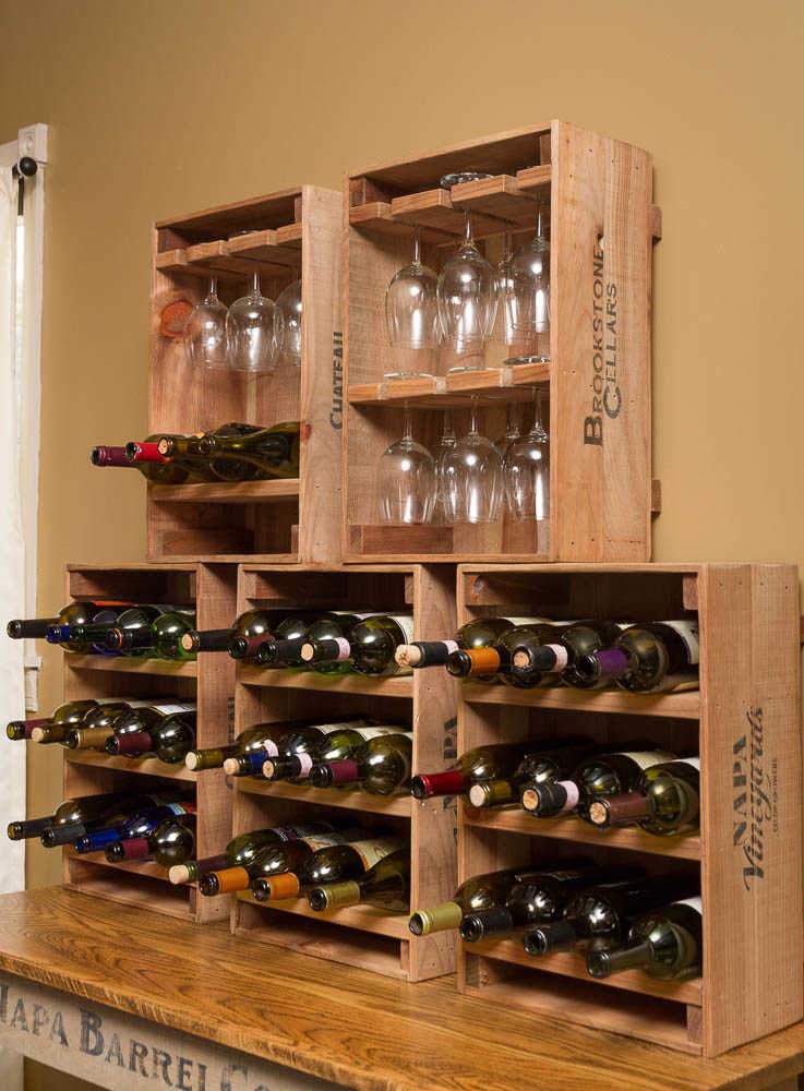 Vintage Pine Wine Crate will show off 12 of your favorite bottles in stylish elegance. Shelf provides ample space for your corkscrew or other wine inspired accessories. Solid wood pine crate has the authentic vineyard stamp on both sides. Crates are easily hung from a wall or may be placed on a tabletop or bar.