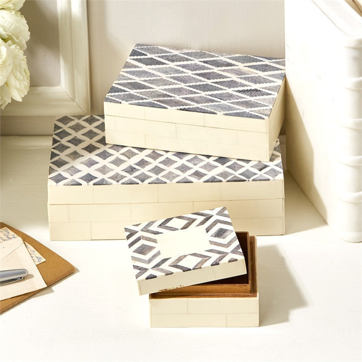 Slate Set of 3 Bone Boxes - Bone/Resin/MDF