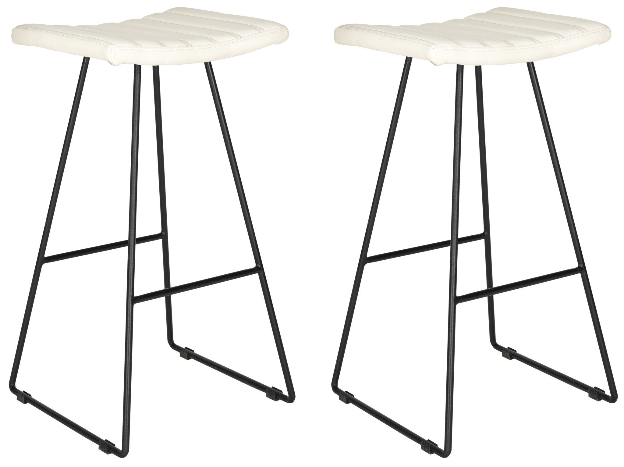 Raise the bar for style in the kitchen or family room with the airy look and clean silhouette of the Akito barstool. A comfy channel-quilted seat of white PU leather rests atop a whisper thin A-line frame of iron supported by sturdy crossbars.
