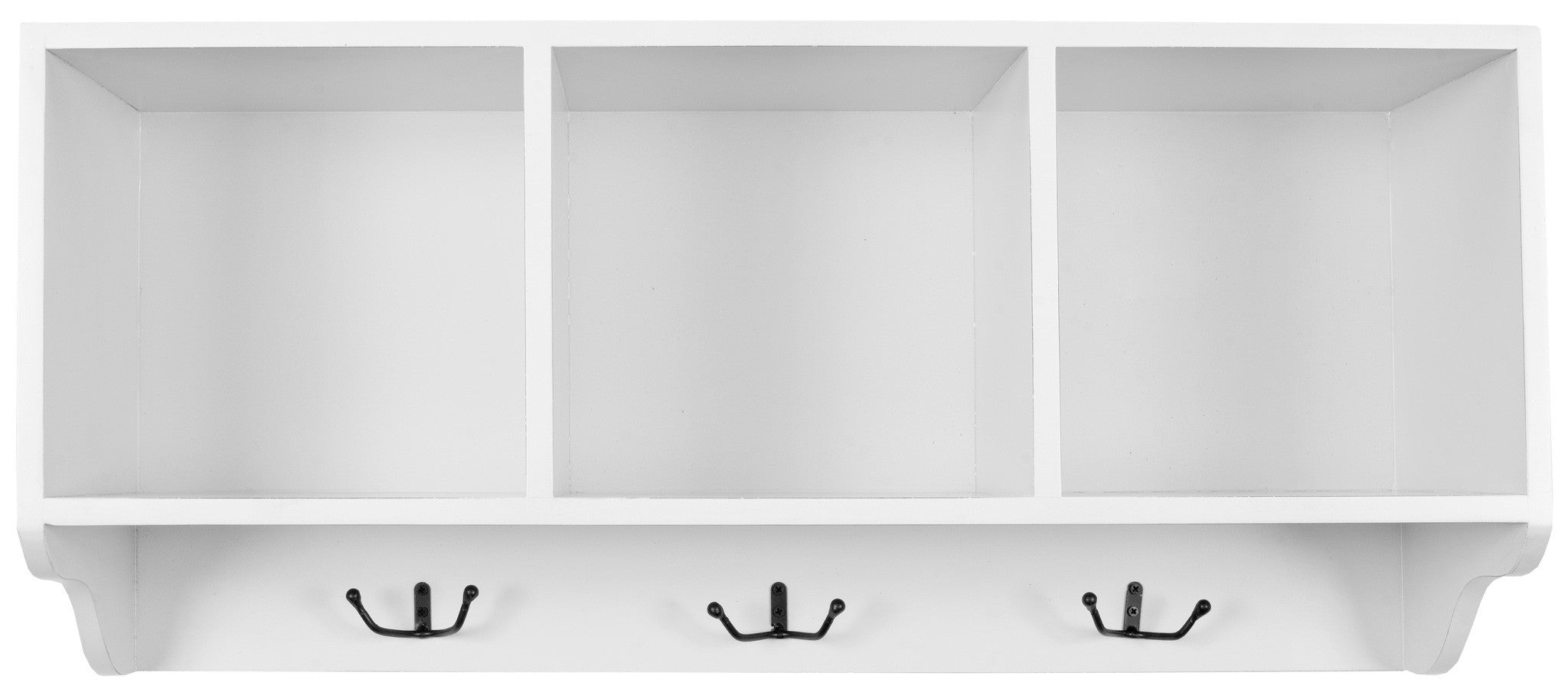Reminiscent of schoolhouse cubbies, the Alice Wall Shelf is designed to minimize entry hall clutter, and keep kids organized. Made from poplar wood with clean white finish, this piece has three storage spaces for hats, gloves, or decorative accessories and hooks for coats and scarves.