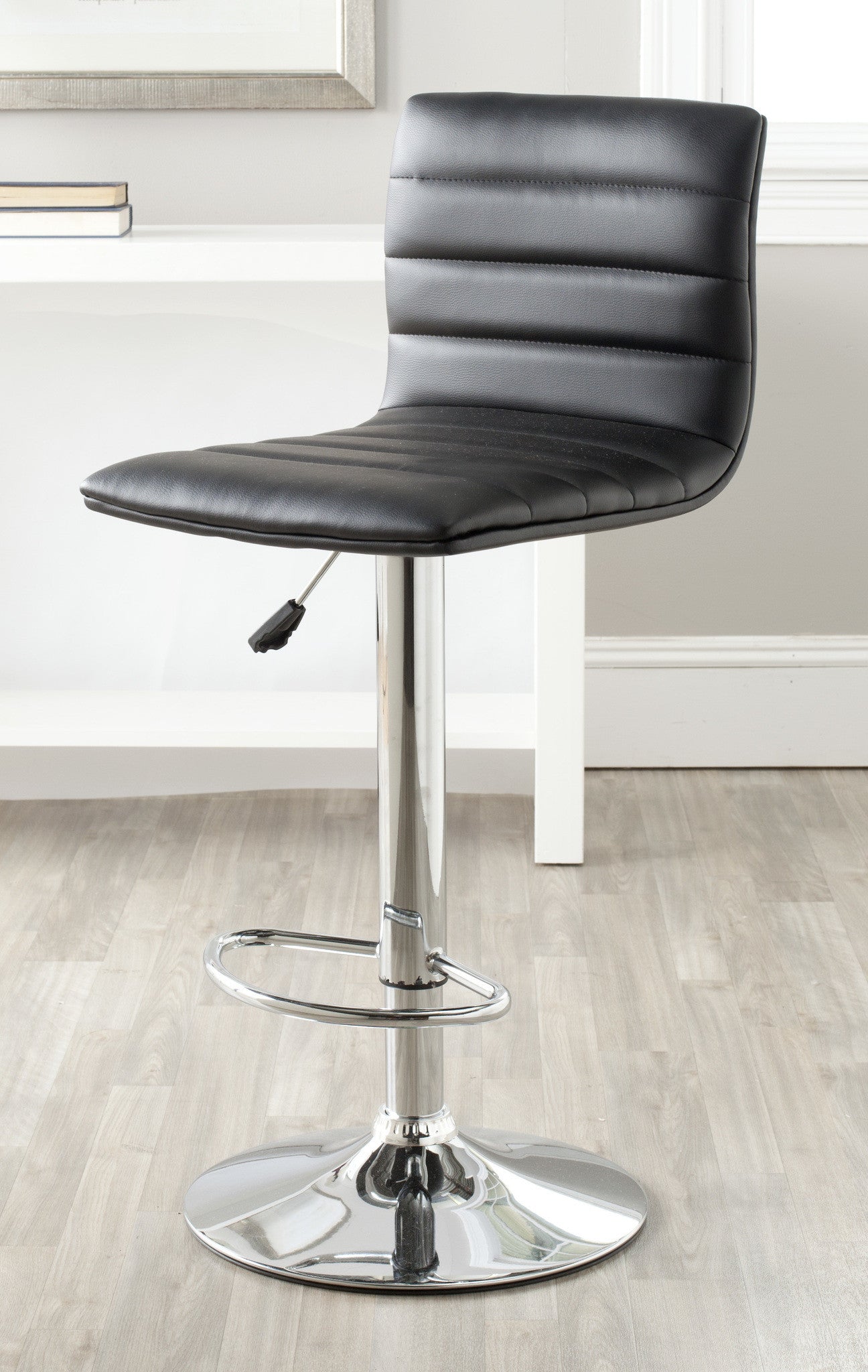 Designed for maximum support and style, the high back of the Arissa Swivel Barstool is perfect for contemporary and transitional interiors. Constructed with chrome and white faux leather, its design ensures durability doesn't take a back seat. Arissa's swivel seat adjusts from 23.8" to 29.9".