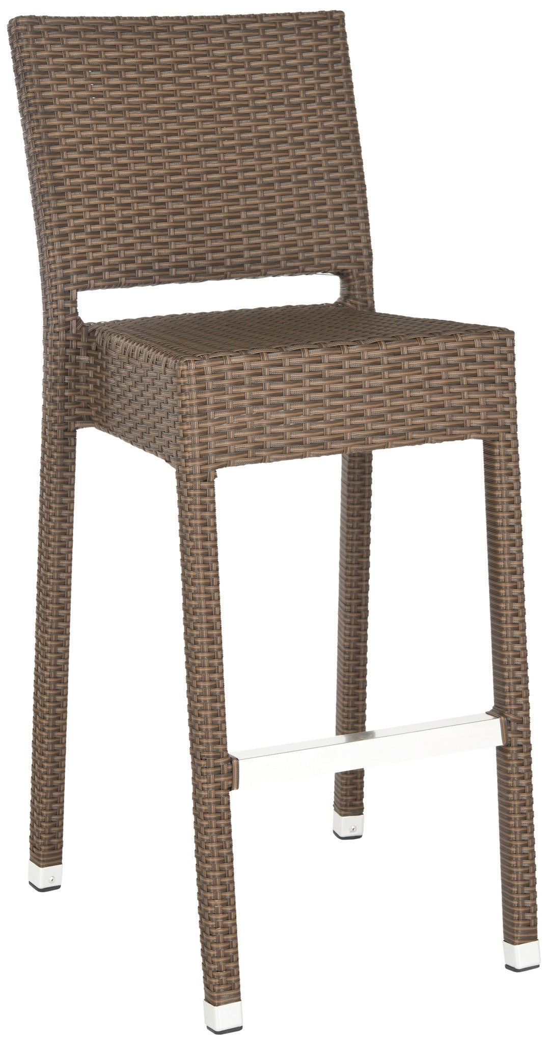 A perfect balance of design and utility, the Bethel indoor-outdoor barstool by Safavieh looks as chic at the kitchen island as it does on the patio. Crafted of easy-care black PE wicker with an aluminum frame, and trimmed with contrasting footrest and caps in silver, Bethel is transitional in style.