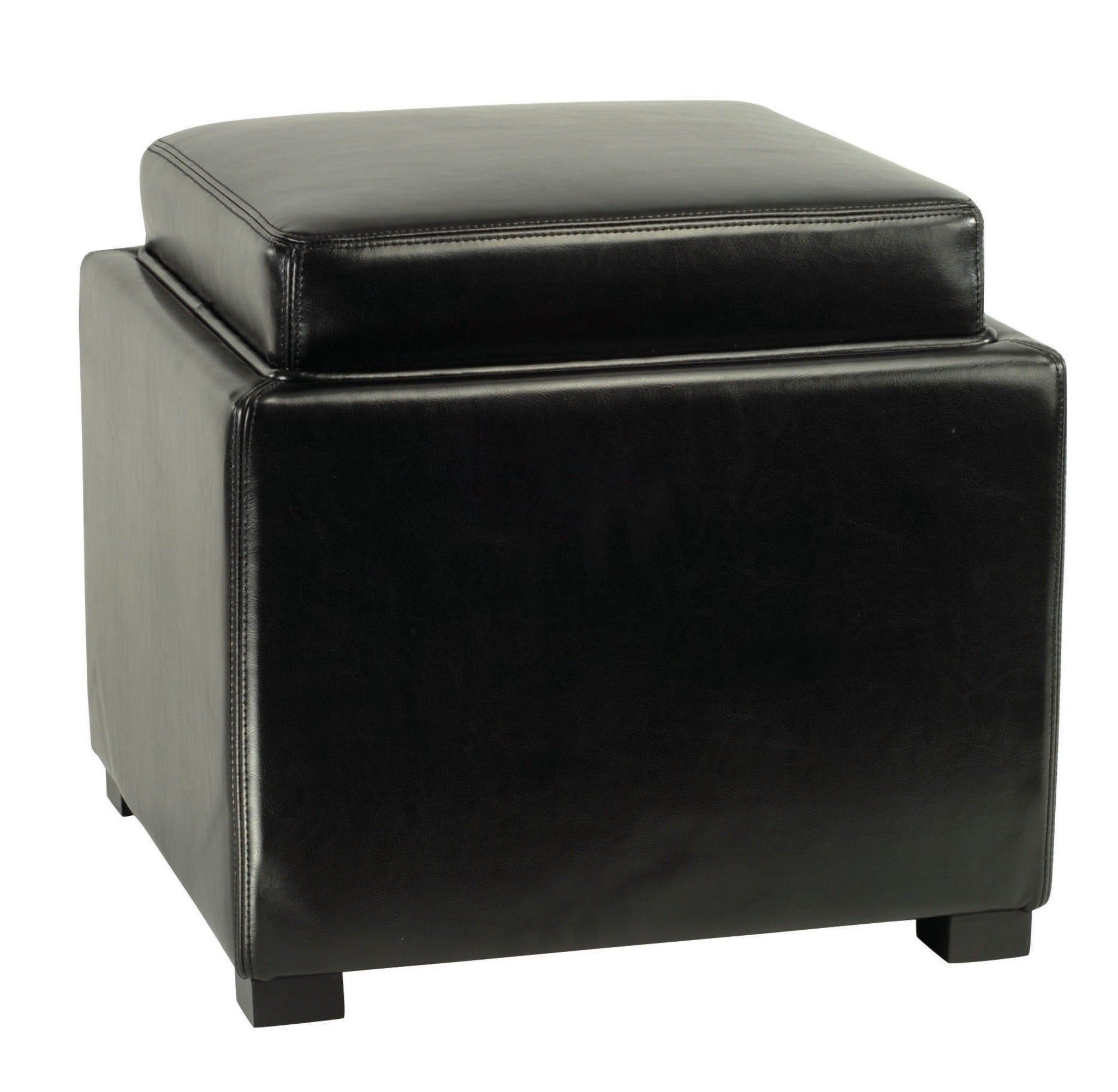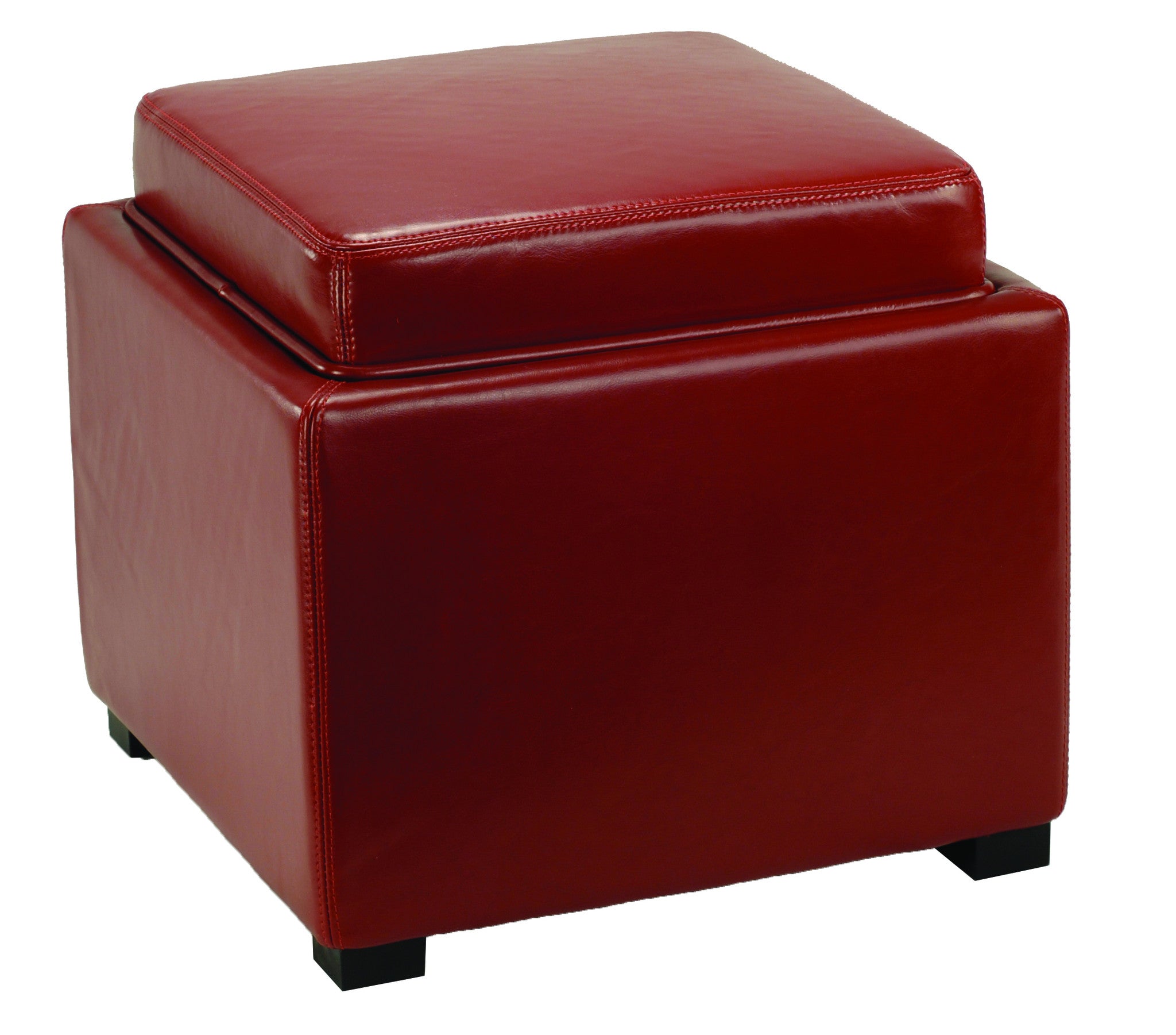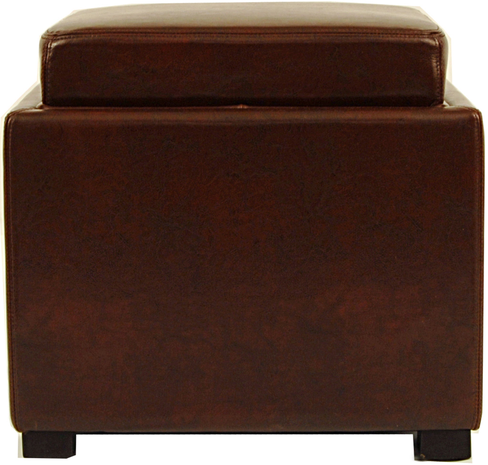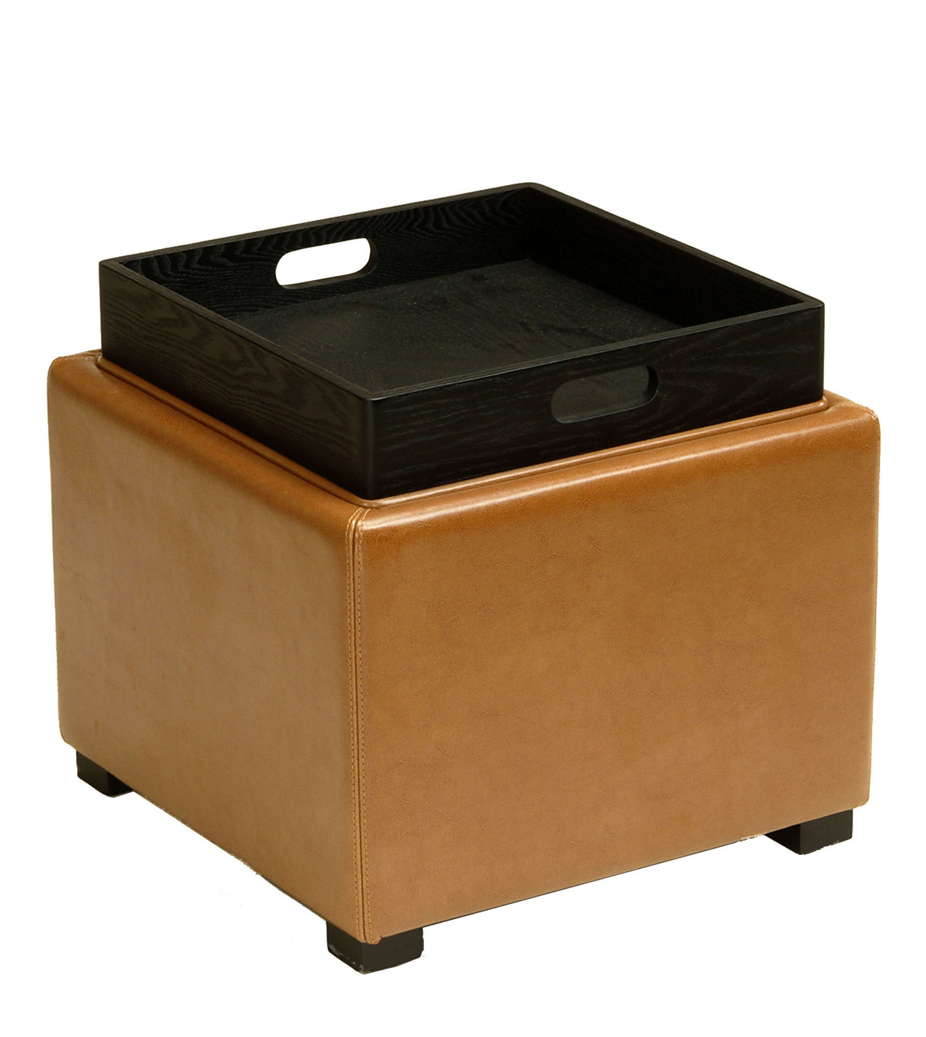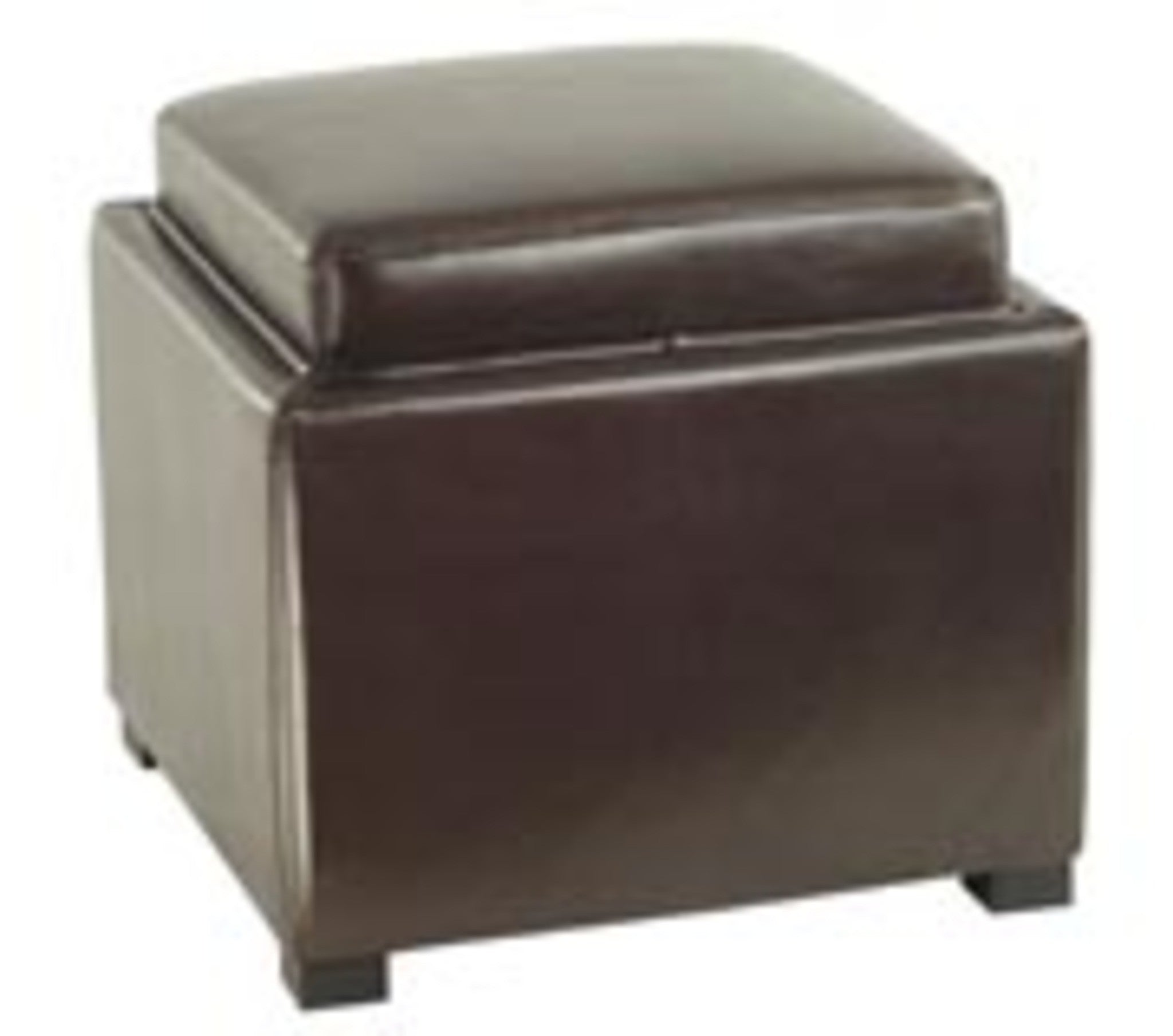 Relax and unwind. The Bobbi Tray Storage Ottoman will be the most efficient member of your family. Sturdy beech wood legs in Java finish make it a heavy-hitter and its smooth cushion top offers extra seating, as well as a tray perfect for a glass of wine after a long day. Upholstered in cordovan bicast leather, Bobbi store blankets, magazines or those bits of techNlogy that interrupt an interior's aesthetic.