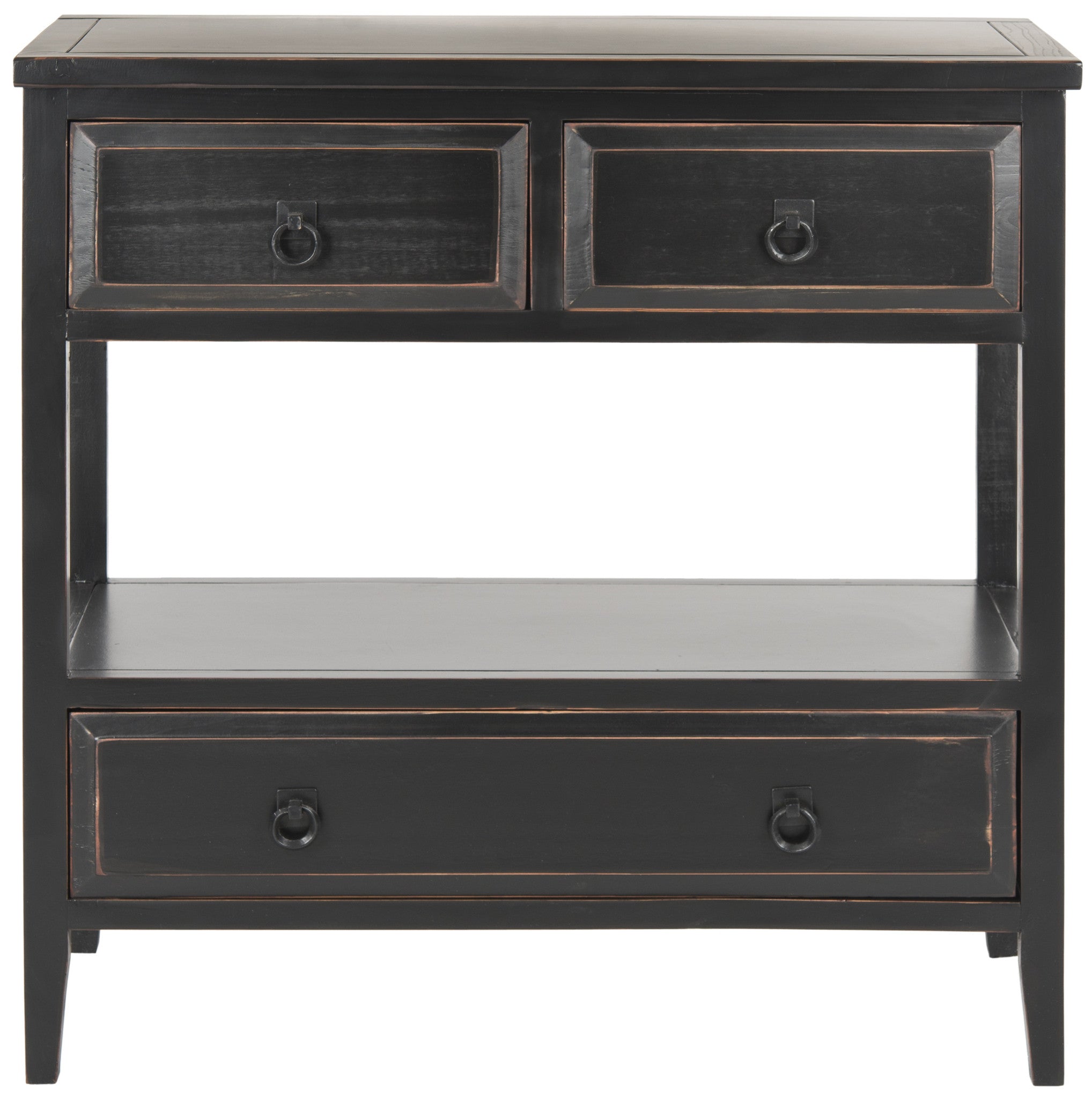 Branson's rustic styling in a honey oak finish adds a fresh breath of country living to your interiors. A hair under 32 inches wide and a slim 15 inches deep, Branson, with its two top drawers, middle shelf and roomy bottom drawer, still provides heaps of storage for smaller spaces. MiNr assembly required.