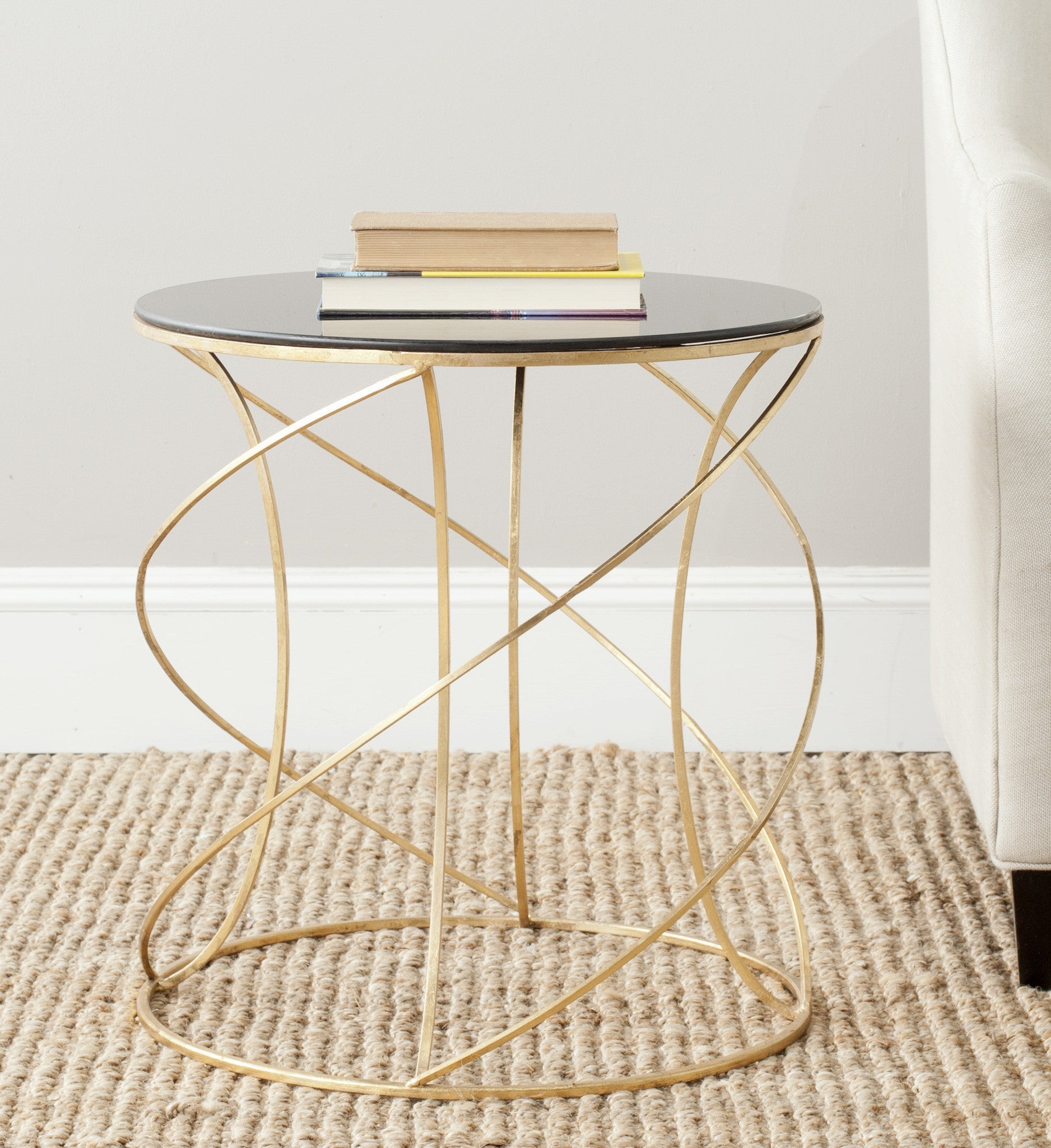 The dynamic curves and chic finish of the Cagney Accent Table make it a polished addition to any decor. Crafted with a gold-finish iron base and white glass tabletop, it brings modern elegance to any decor. It is an ideal spot for a cocktail, small lamp or priceless antique.