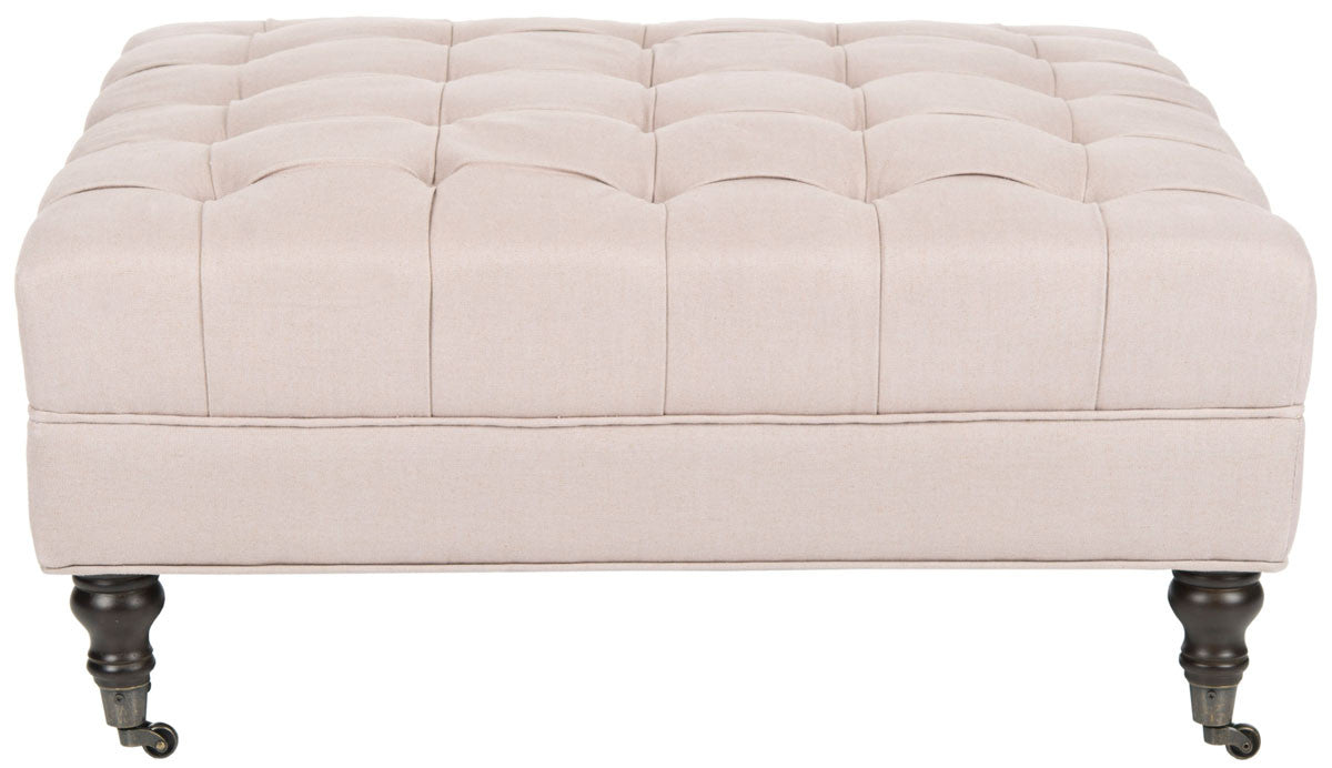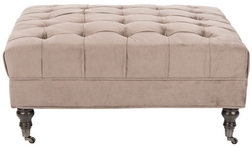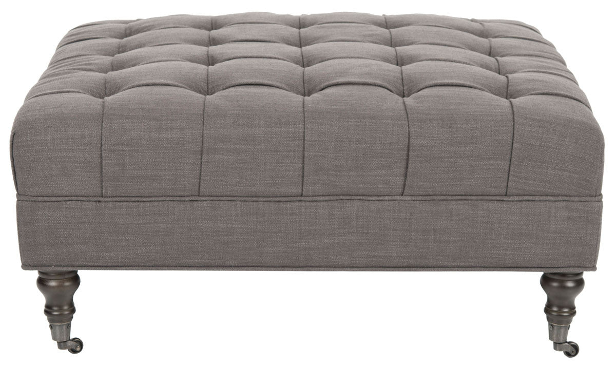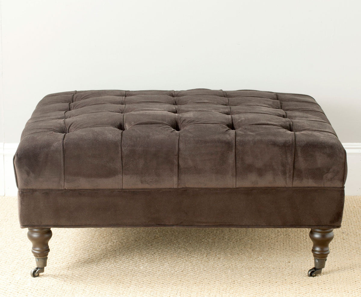 Treat yourself to the club room elegance of the Clark Cocktail ottoman, an indulgence in any living room, great room or den. Richly upholstered with button tufting in graphite-toned cotton velvet, this versatile piece rests on turned arrow birch legs in espresso finish. Style it as a cocktail table with books, serving trays and more, use it as a foot rest or extra perch for guests. The Clark ottoman is a designer classic.