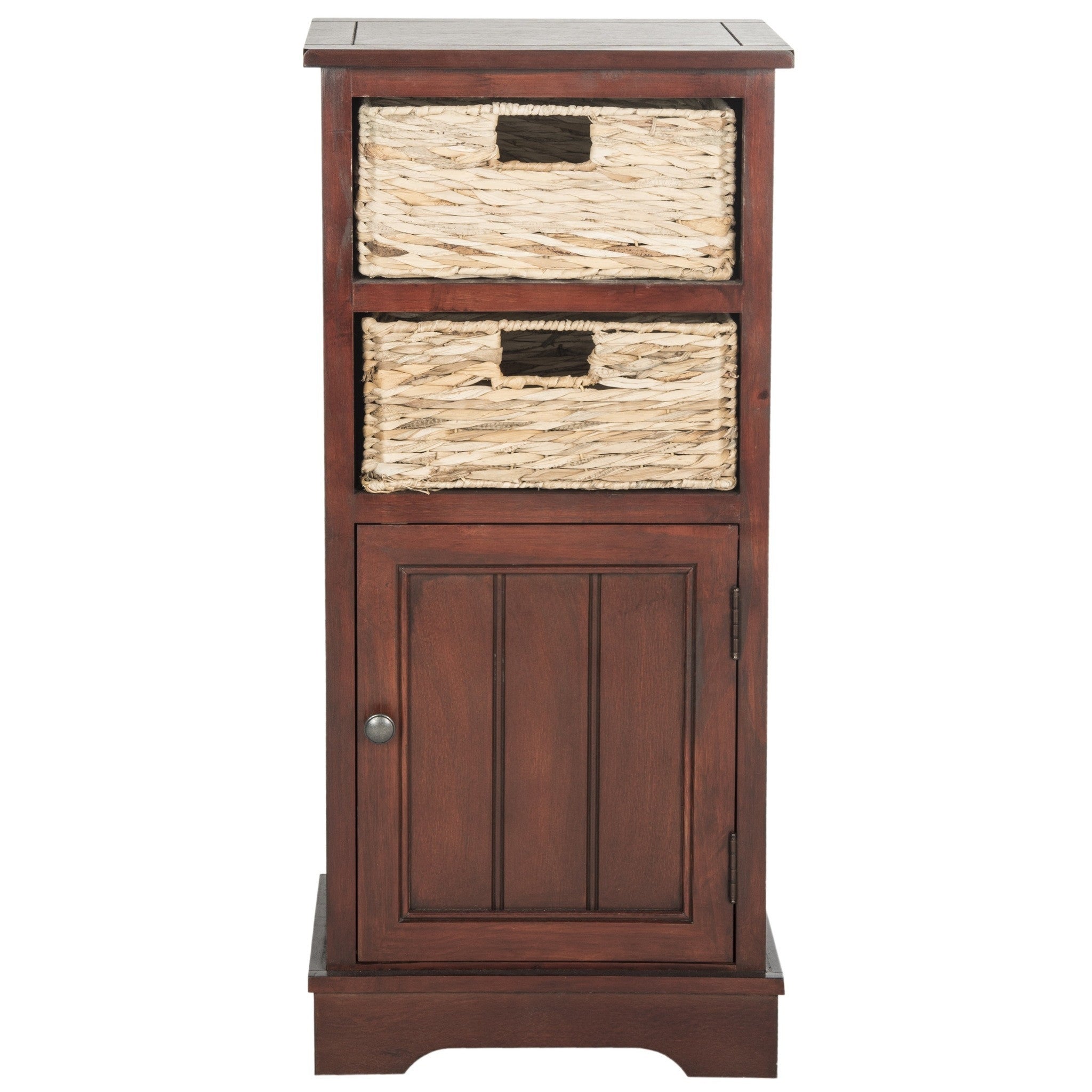 Easygoing casual charm characterizes this pretty but hardworking distressed black storage cabinet, a stylish addition to any space in need of organization. Crafted of pine with wicker baskets above a closed-door cabinet, it stows essentials close at hand.