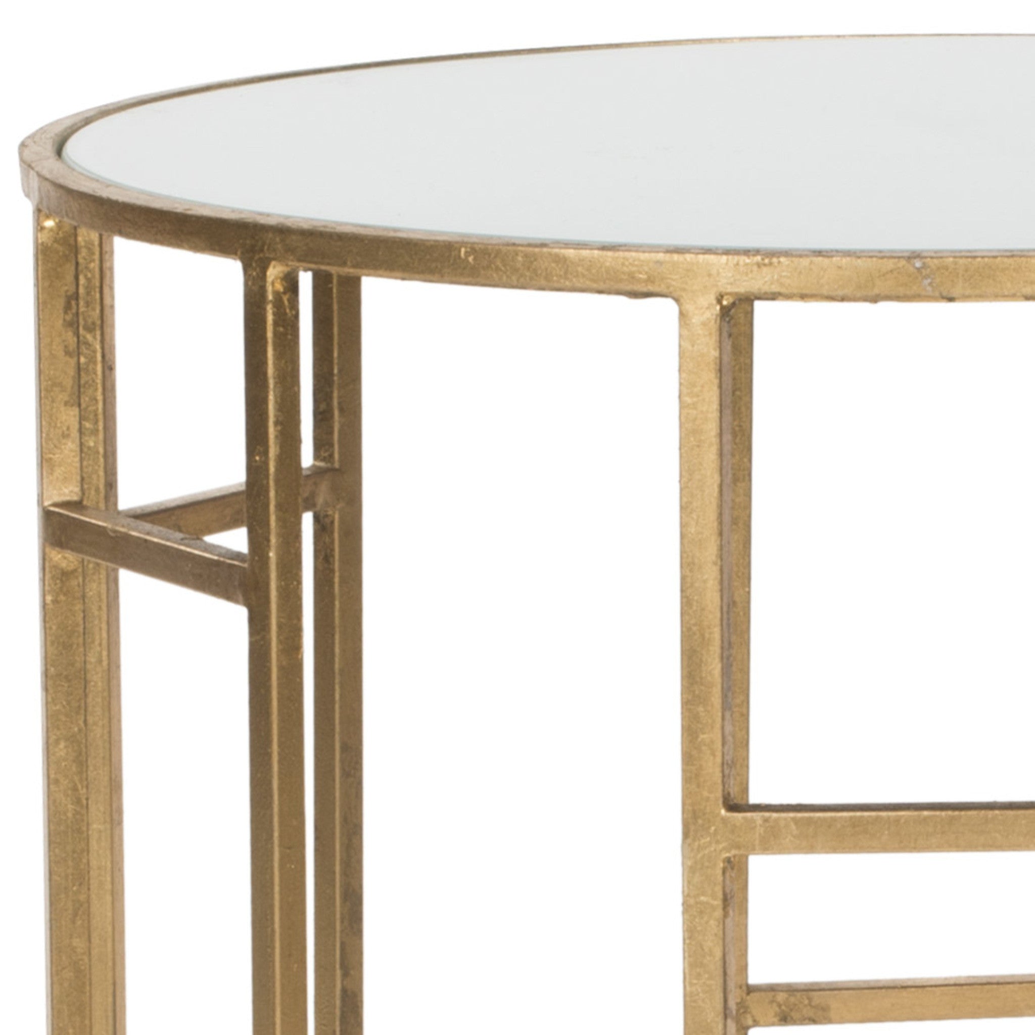 Inspired by the Golden Mean of ancient geometry, the Doreen Accent Table embraces the clean lines of modernity to make it a design star. Crafted with a gold-leafed iron base and mirrored tabletop, it instantly refreshes any decor.
