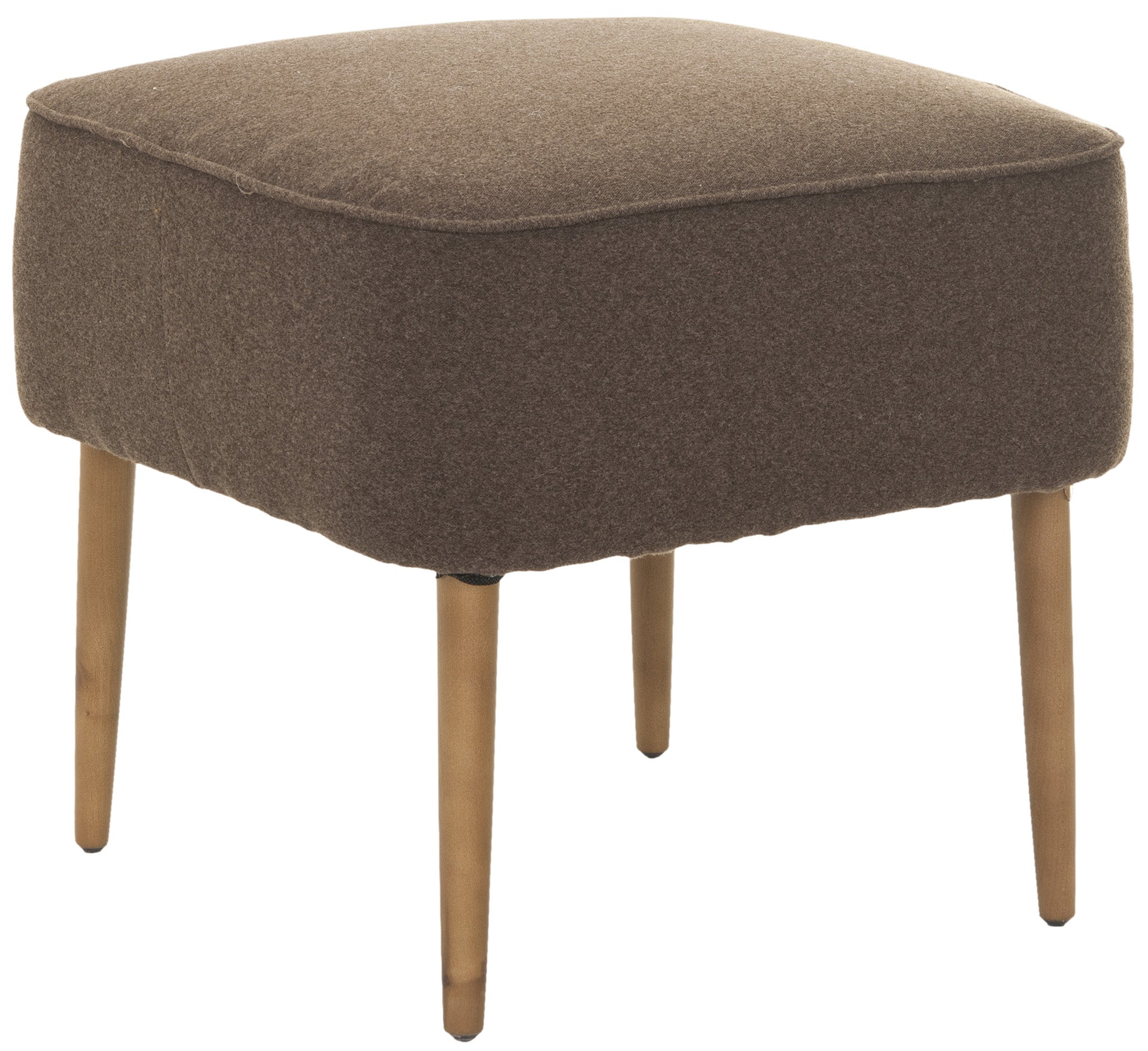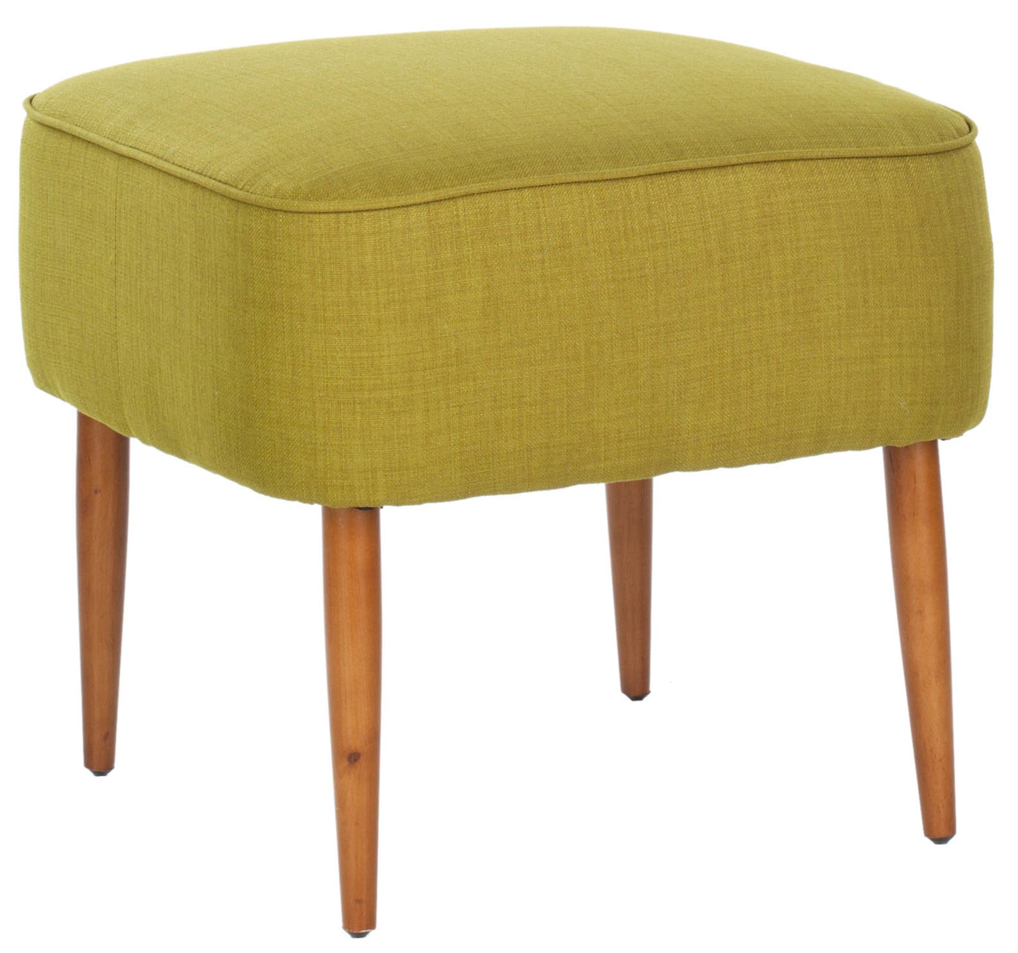 A diminutive footstool with natural oak -finished spindle legs inspired by Mid-Century Modern chairs, the Eli ottoman is the ideal solution for bedroom, bath or apartment living room. Covered with sweet pea green fabric in a blend of polyester and organic viscose, and detailed with self-binding, the Eli square ottoman looks great tucked in pairs under a console.