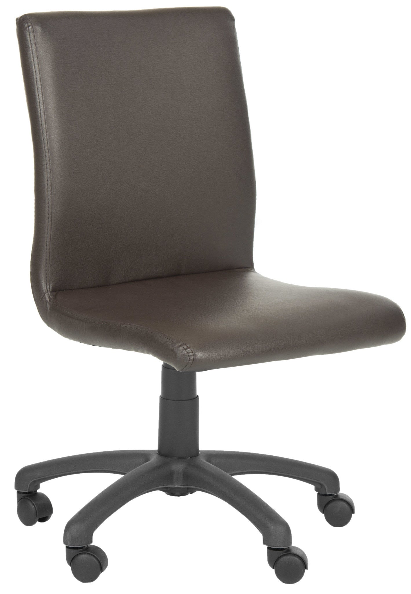 Yes, there can there be fun in functional. The tall, armless Hal Desk Chair brings any office space up to date with its clean, modern lines. Upholstered with brown PVC faux leather, its adjustable, durable seat and plastic wheels make 9-5 the new happy hour.